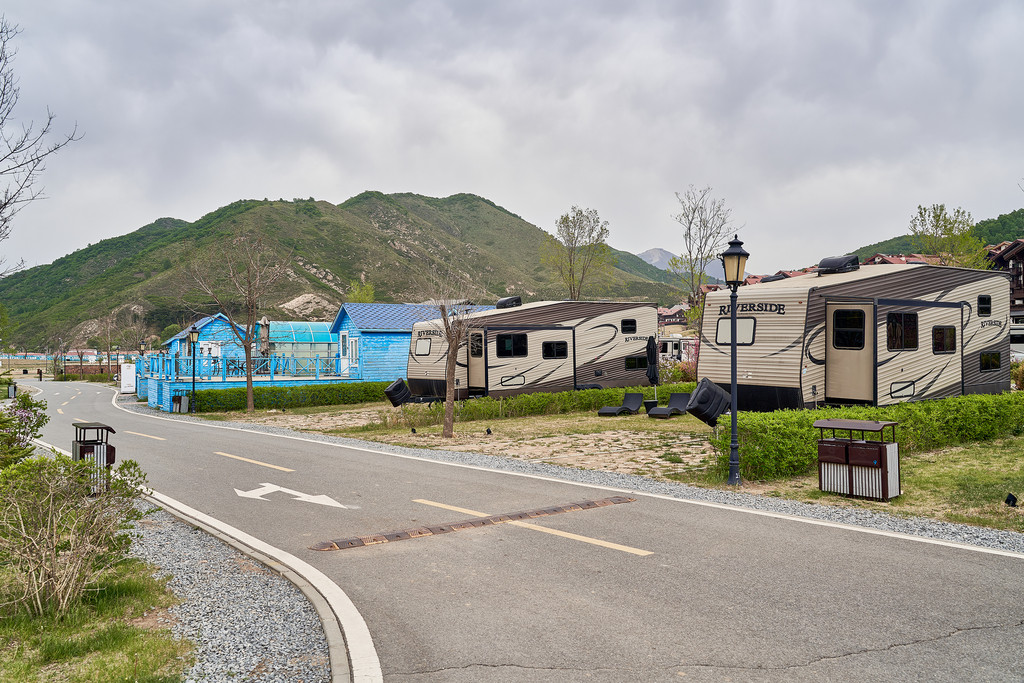 左侧是居住的楼房,右侧就是房车营地,可以开车进入参观和游览。