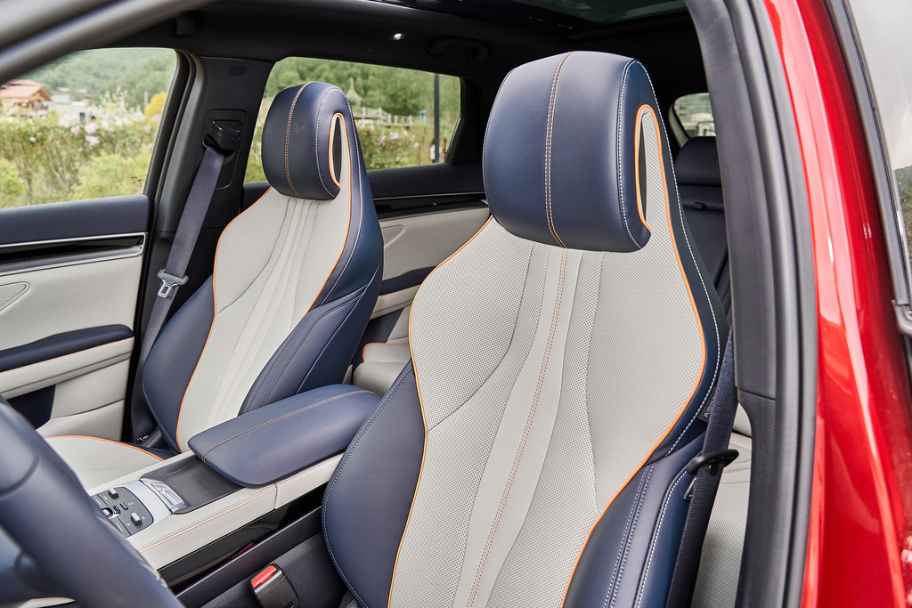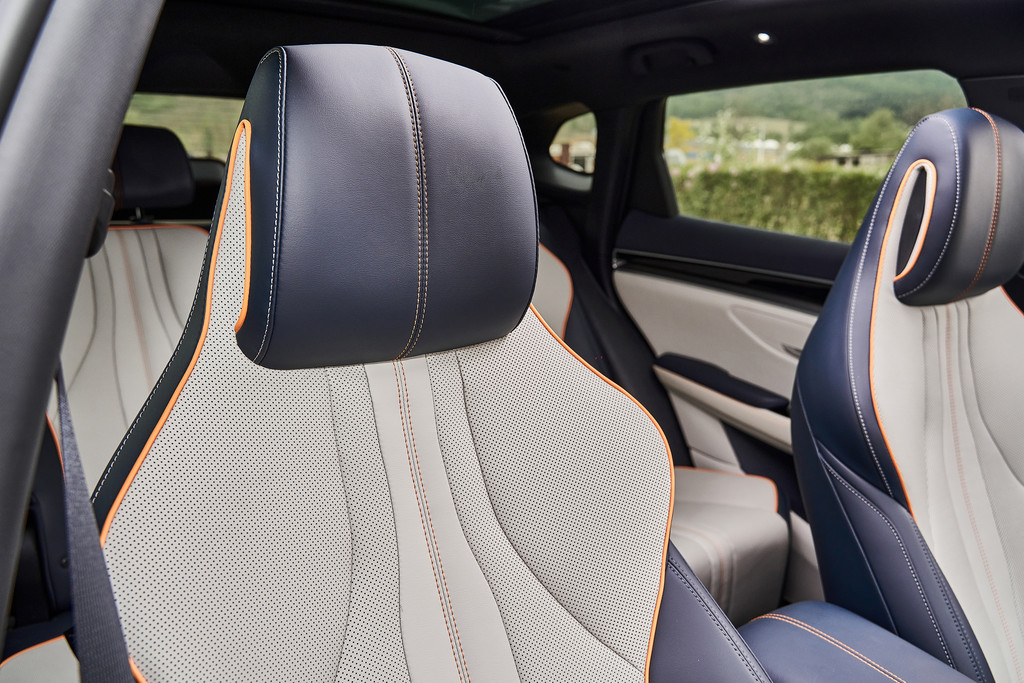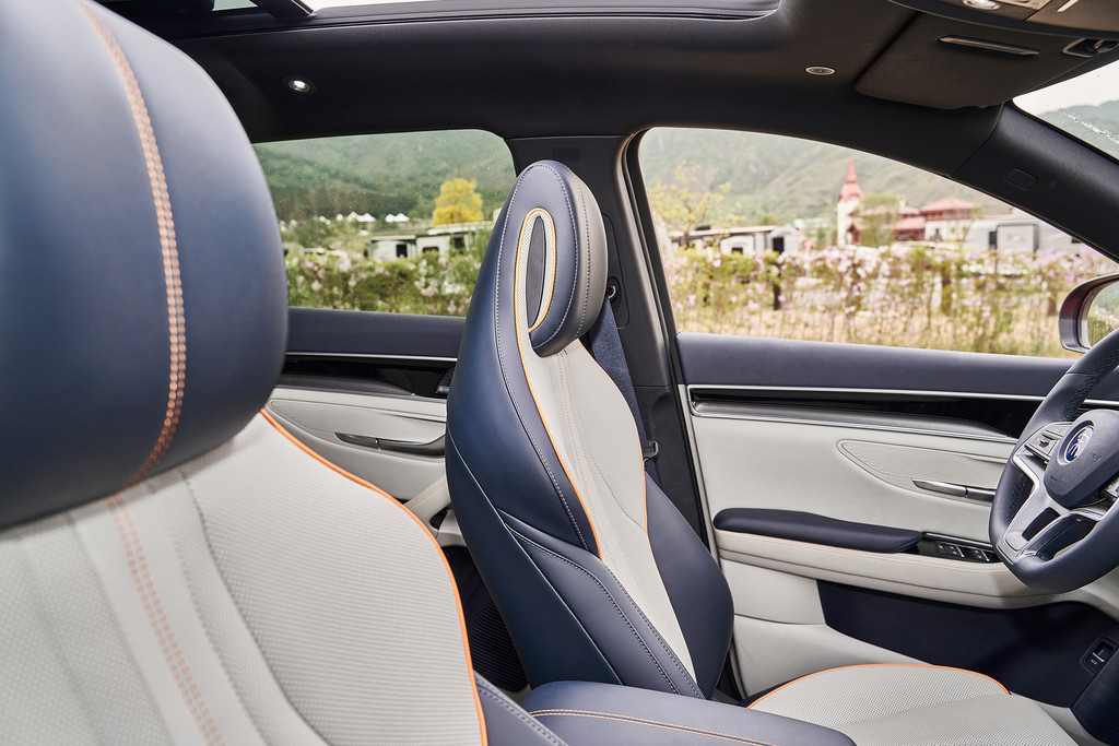 宋PLUS DM-i的座椅造型我非常喜欢,非常有自己的特色,一体式头枕,造型时尚精美,主副驾驶均可以电动调节,并且也都有通风和加热的功能,官方称为一体式龙脊座椅,这名字也不错。