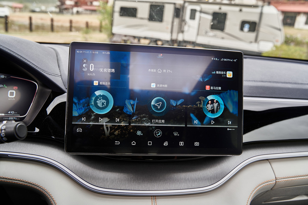 12.8英寸DiLink Pad中央显示屏,内置的软件应用非常多,觉得有点杂乱了,刚上手时找应用有点不知所措,系统内置了很多音乐软件,可以通过蓝牙功能连接到我的手机,播放我收藏的歌曲。