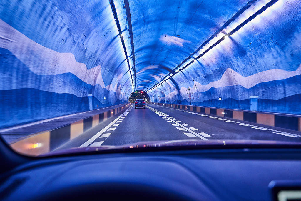 在去往山谷的路上,有很多隧道,隧道内限速80公里/小时,如果车辆很少的情况下,这个速度感觉很慢的,继续开启辅助驾驶模式,听听歌来享受这漫长的隧道吧。