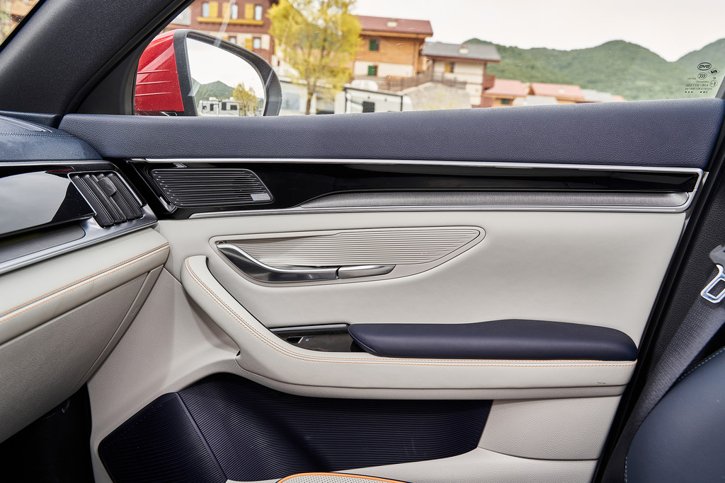 门板的设计和驾驶台保持了一致的风格,材料和工艺的变化很丰富,同样的具有非常精致的视觉感受。