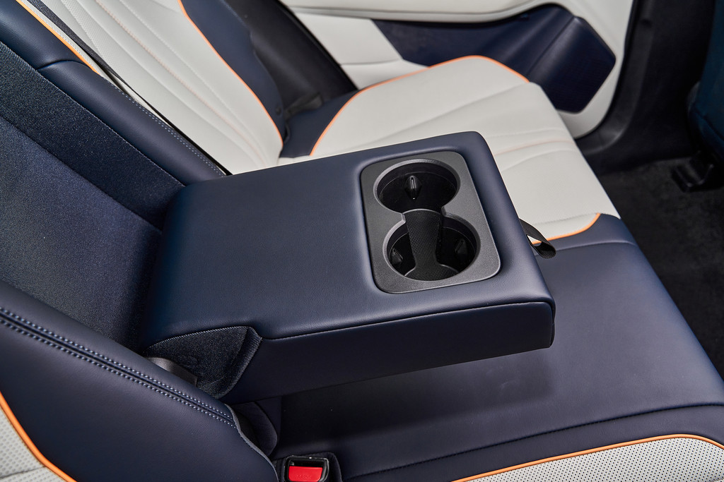 稍显不足的是这个杯架,杯架本身没有问题,扶手箱的位置做的有些靠前,在杯架中放置快餐店购买的饮料杯,由于扶手箱的干涉,很难往外拿出。就是扶手箱会挤压杯架的空间,导致饮料杯不能正常顺利的拿取。