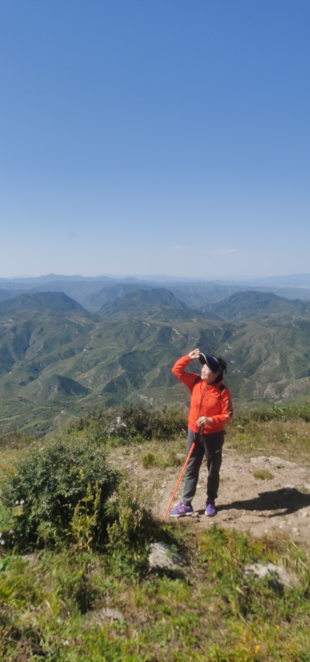 到达赤城后城沿公路到曹家窑大牌楼转入村道,顺着村道一直前行过小桥后只有一条上山路,直到二道洼村小广场。后面的路基本要四驱升高过的才能上到山顶。因我们有普通轿车上山几无可能,所以,只有徒步1.8Km最终到达山顶。还有一条越野穿越的路,但需要有轨迹和准确导航路线才可以,否则,迷途知返时间不充裕,沿原路下山估计贪黑走夜路了。山顶的景色需要宽广的视野才能领略它的壮美只内在!值得再次前往探寻其幽深的秘境。