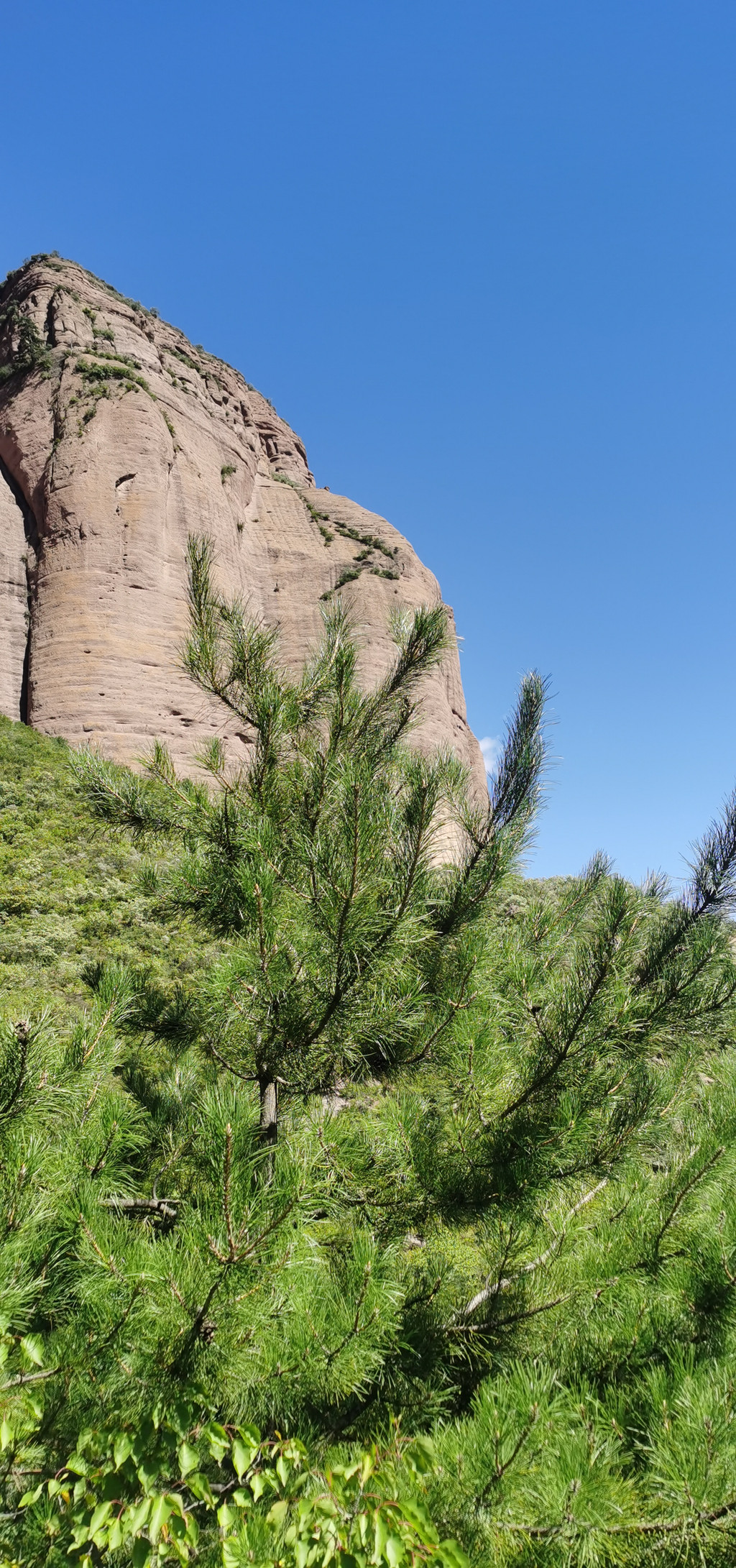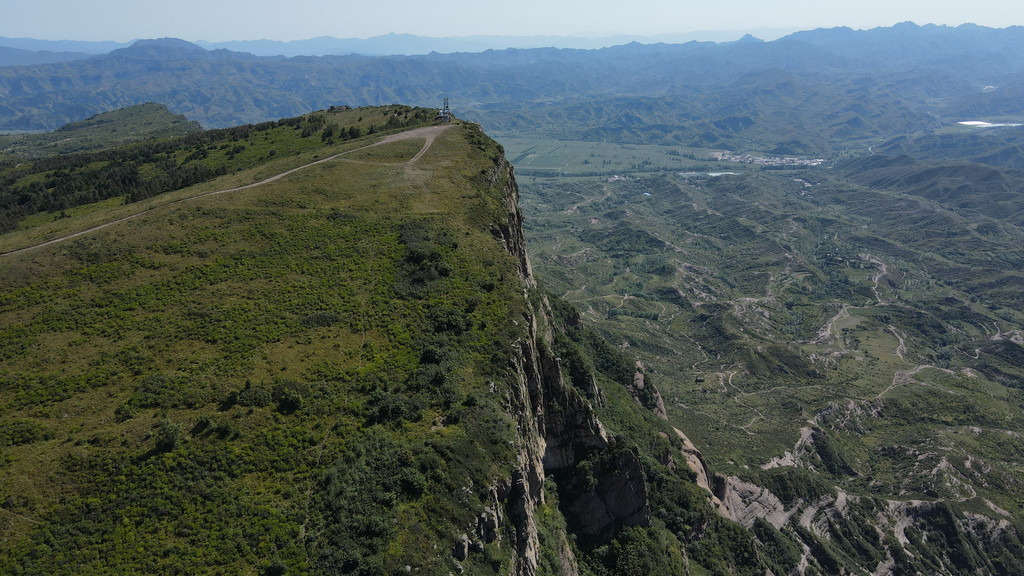 从巨石南端,只能到达两石窟。再向上,任你有堪比猿猴的攀爬本领也是上不去的。而从巨石西边的二道洼村,则可以驱车一直开到崖顶。崖顶平坦如砥,绿草如茵,居高远望,山川田野尽收眼底,清风吹来,那份惬意舒爽,在山下是体会不到的。如果不想走,还可以夜间露营,看星星、看日出。