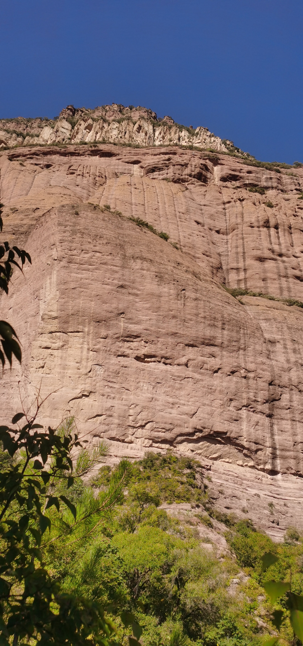 其中滴水崖高180米,是中生代侏罗纪紫红色砂烁岩组成的悬崖,历史上有“幽燕第一峰 ”“天下第一石”之称。这就是后城赤壁——“碧峰万仞滴水惊华夏;富饶祥云一石震九州。”