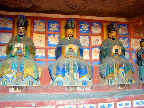 登上不算太高的山中景区就到了朝阳观的山门前。进入山门步行不远,人们会看到凿于山腰间北面和西侧的朝阳观三官殿、泰山殿、真武殿等石窟殿穴。