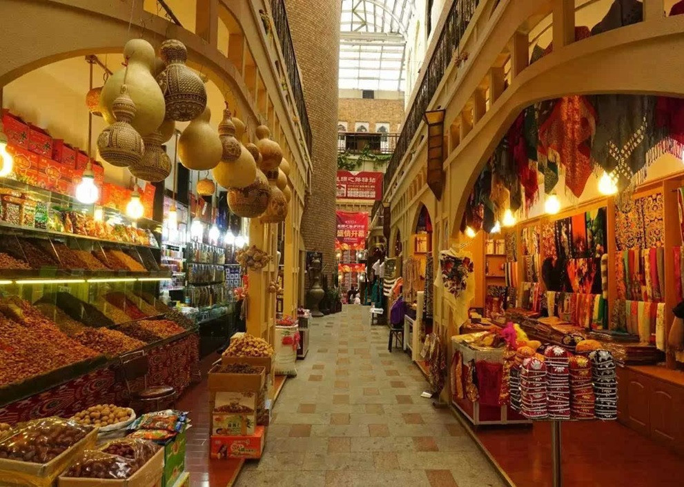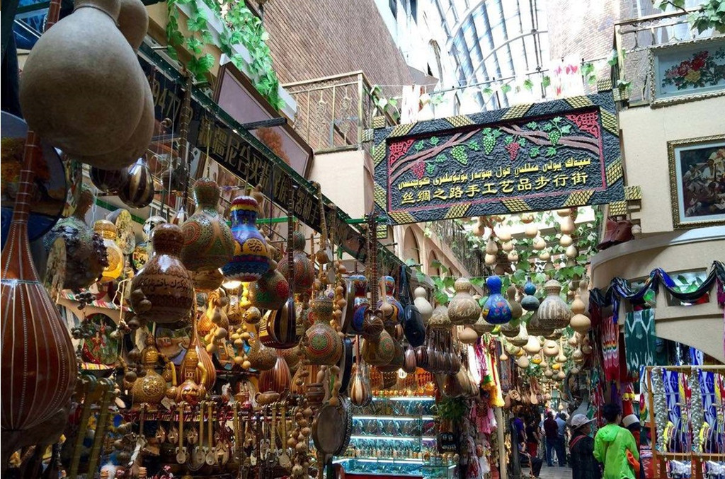 大巴扎里经营品种之多,规模之大,蔚为壮观,让人叹为观止。内地有的这里尽有,内地没有这里也有。各类民族服饰、鞋帽衣物、地毯挂锦、皮具刀具、乐器陶器;金银铜器工艺品、化妆品、干果水果;地域特色食品等应有尽有,这里集世界商品之大全。当你走大巴扎,就如同走进一座迷宫,即仿佛来到了土耳其的安卡拉、来到了摩洛哥的卡萨布兰卡!