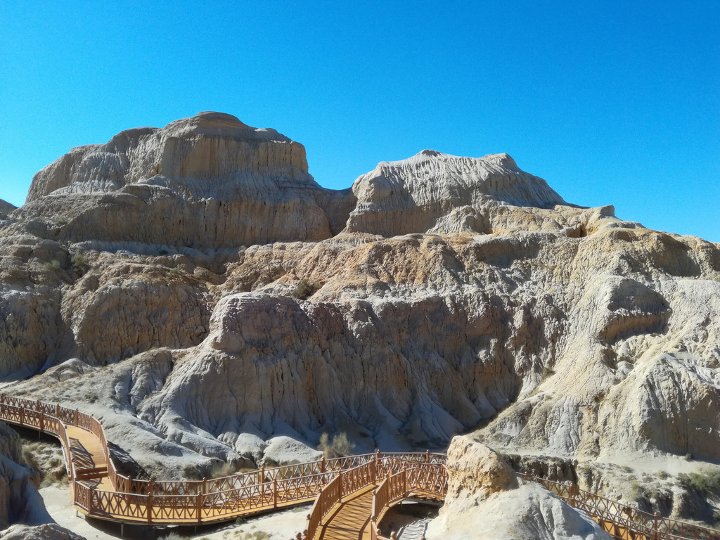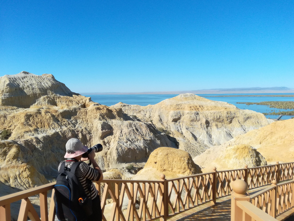 栈道观景台上看雅丹,壮丽的福海水上魔鬼城尽收眼底。
