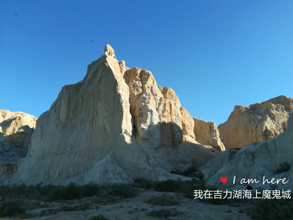 据司机赵师傅介绍,福海魔鬼城地处吉力湖东南岸,根本不在地图标注的乌伦古湖渔场所在地(当地称东河口),两相差了十几公里,而且,从东河口到雅丹区也无路可走,除了绕行福海县城,另只能从吉利湖渔场码头(当地称小海子)乘游艇到达。这片雅丹地貌东西走向绵延十余里(也不是网上所说的南北方向),大部分临水环绕在吉力湖的东南岸(也不是网上所说的东北岸)。为什么会有如此的地理偏差,着实让人费解!