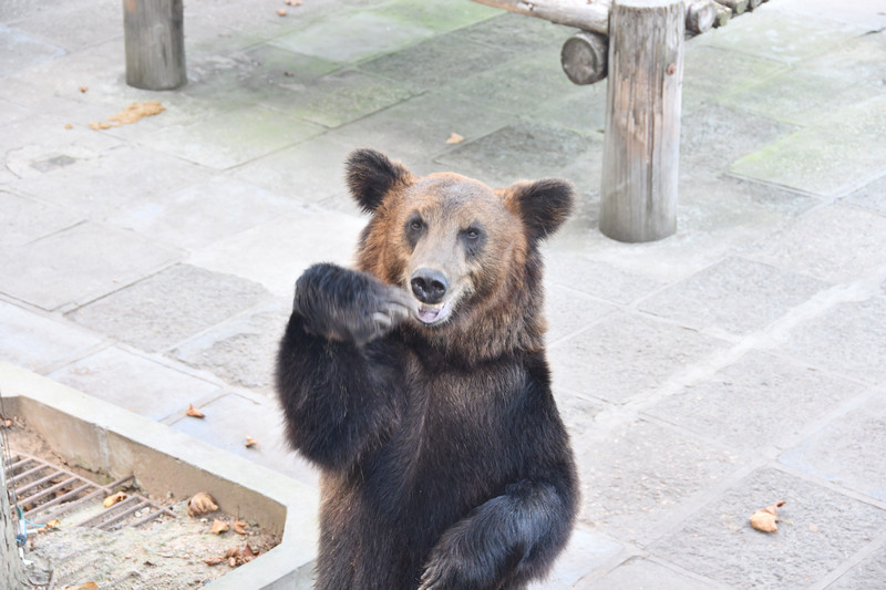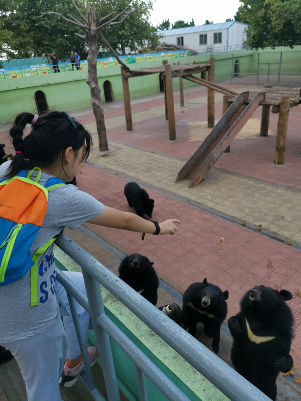 熊,很搞笑,为了让人投食,会转圈,会招手。