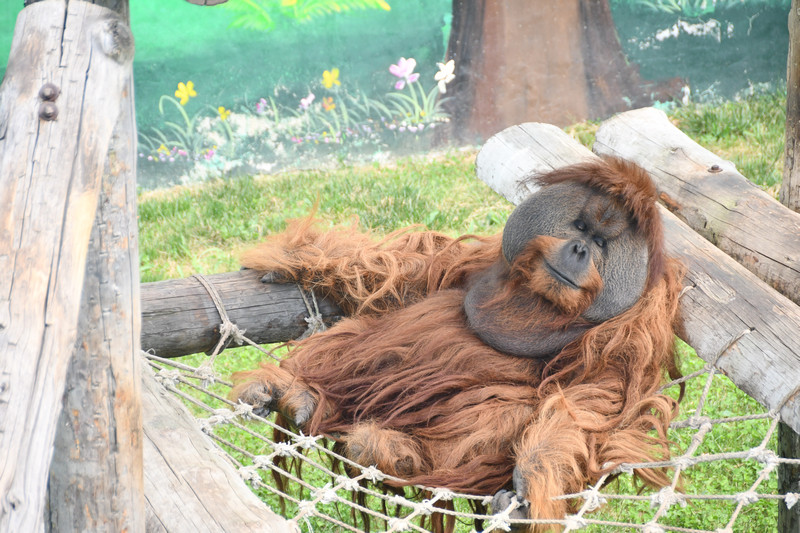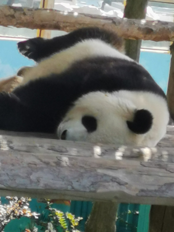 熊猫馆最宽敞,两只熊猫一人一个独立的别墅比对面的黑熊的集体宿舍好多了。