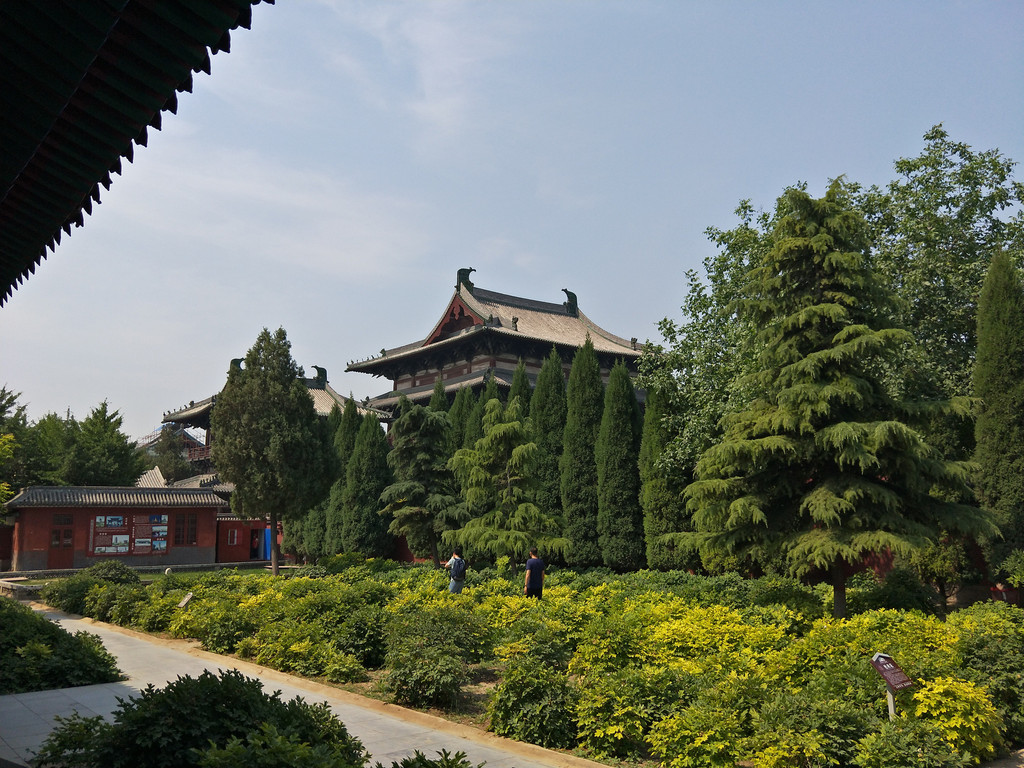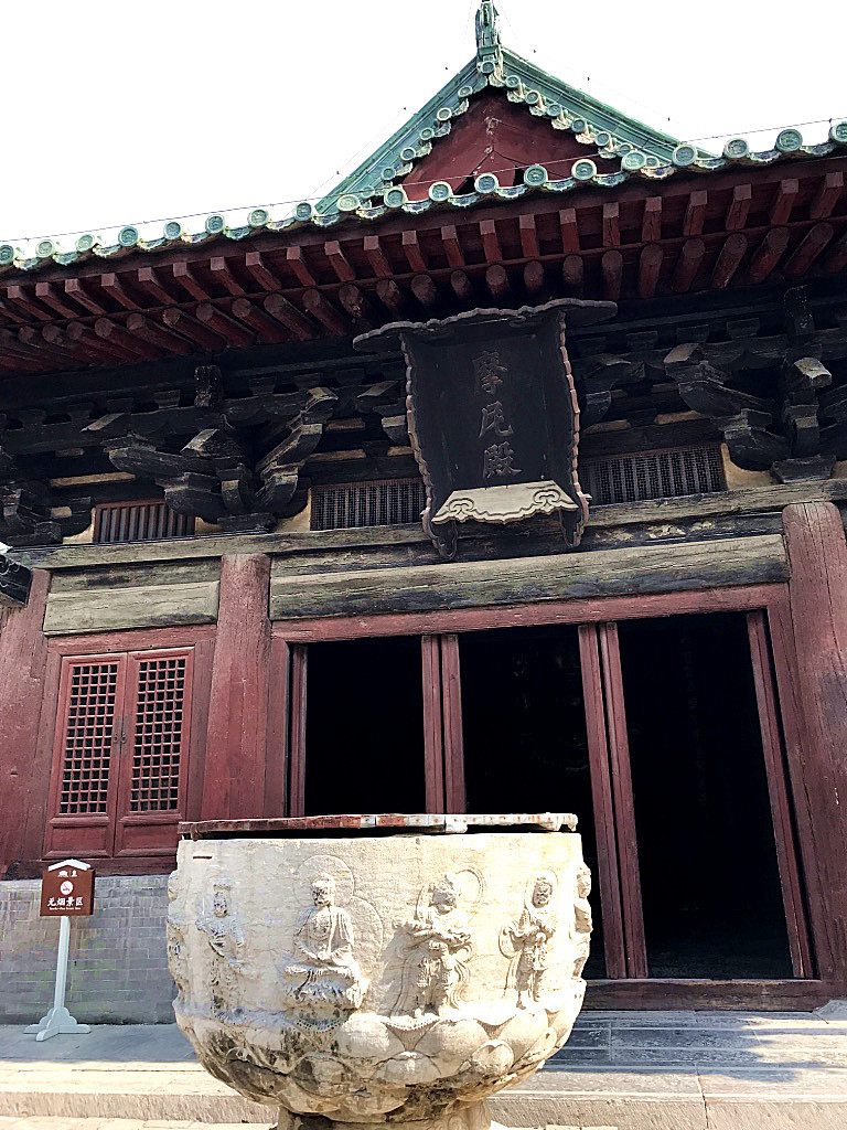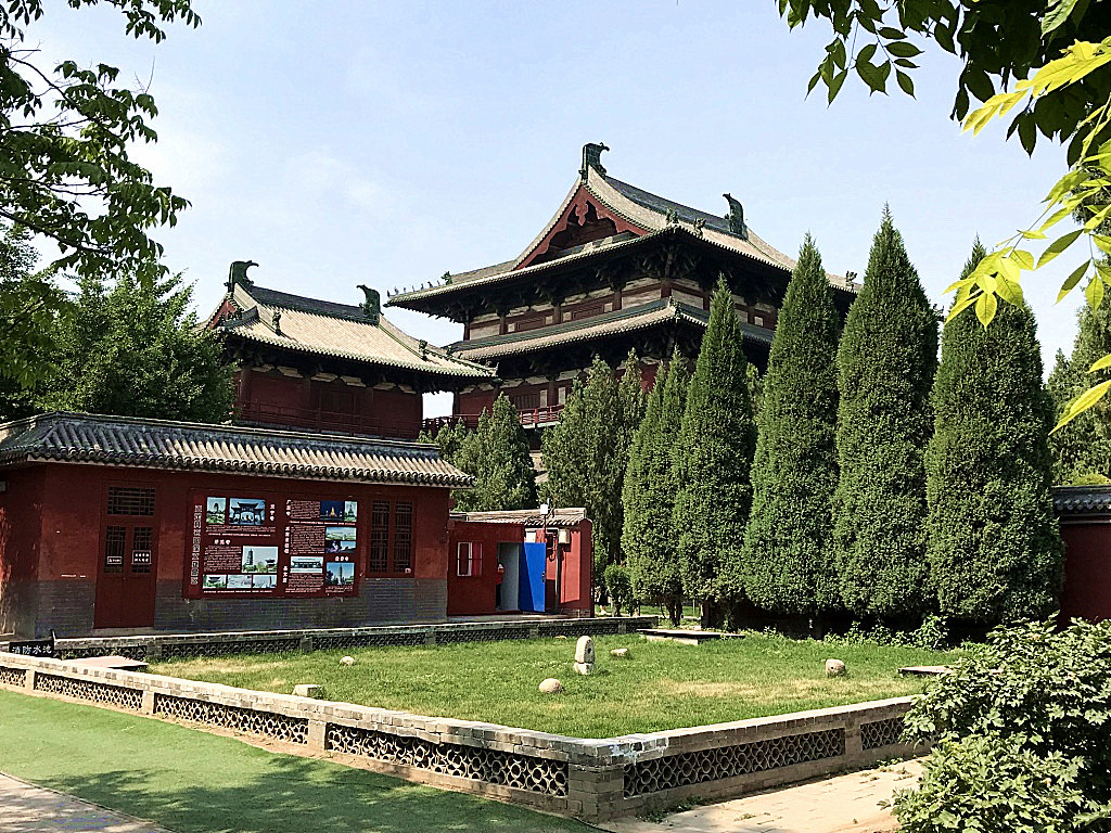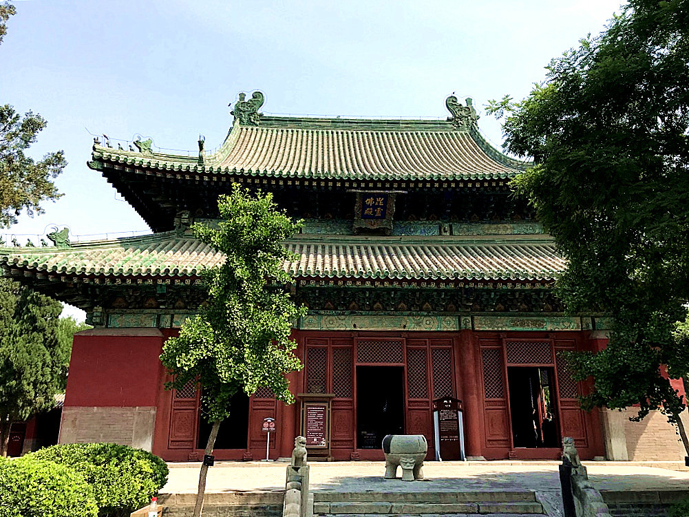 摩尼殿是该寺主要建筑之一,坐落在中轴线前部,始建于公元1052年(宋仁宗皇佑四年),总面积为1400平方米。大殿结构属抬梁式木结构,平面呈十字形。