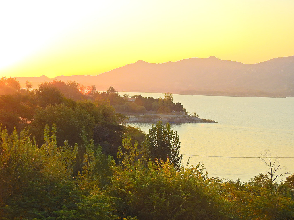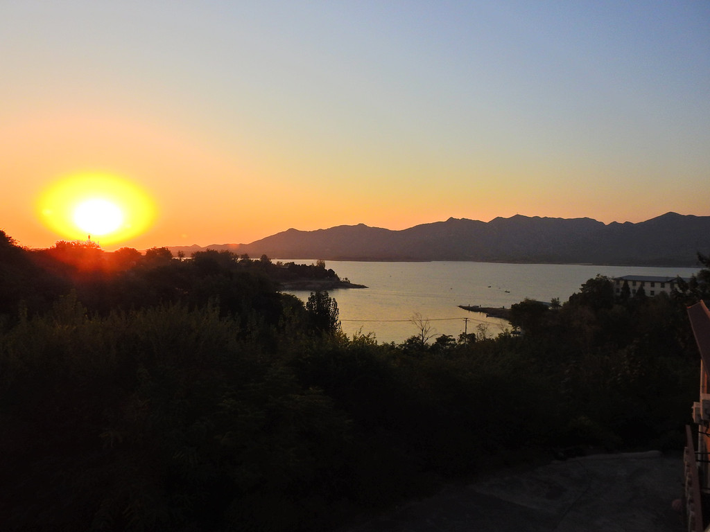 清晨在我们住宿的民宿酒店阳台上看到的日出场景