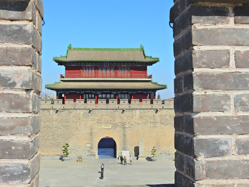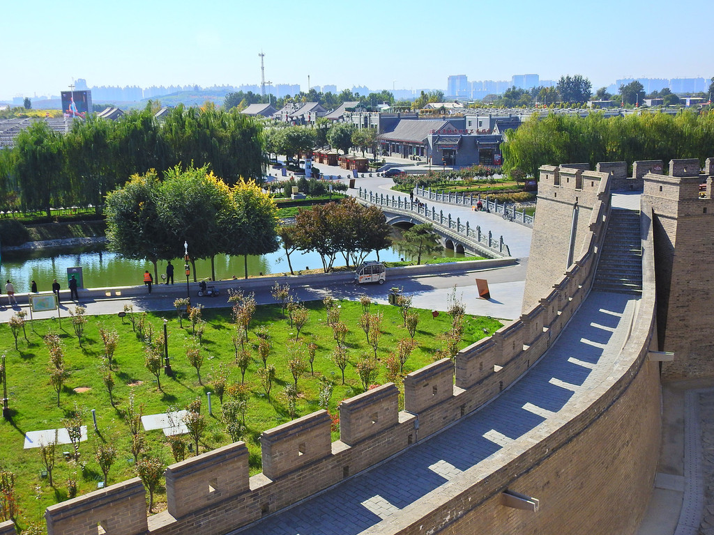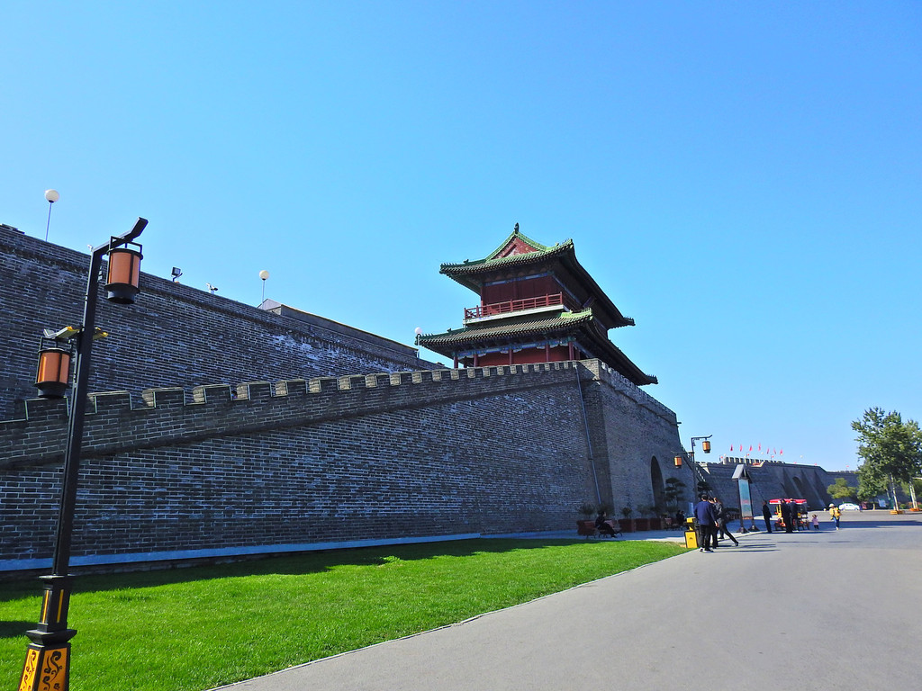 正定古城墙始建于北周,初为石筑。唐宝应元年(762年)因滹沱河溢水灌城,城日以圮,进行拓建。明正统十四年(1449年),扩建为周长二十四里,高三丈二尺,上宽二丈的土城。隆庆五年(1571年)真定知县顾授始将土城改为砖城