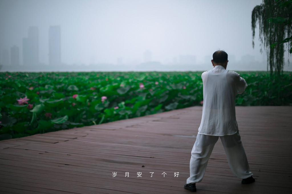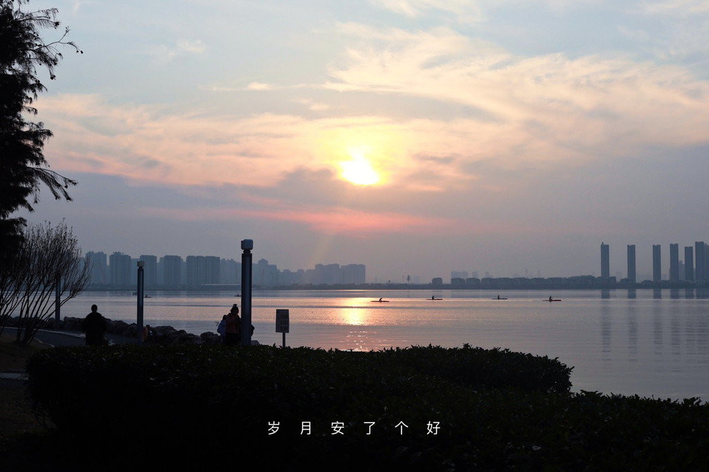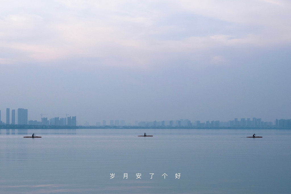 走到临湖边,湖面上正巧在举办一场划船比赛,喇叭声中高喊着加油的口号,在夕阳落下之际,空气中夹杂着雾蒙蒙的感觉,这样好像就是烟雨朦胧的苏州城吧。