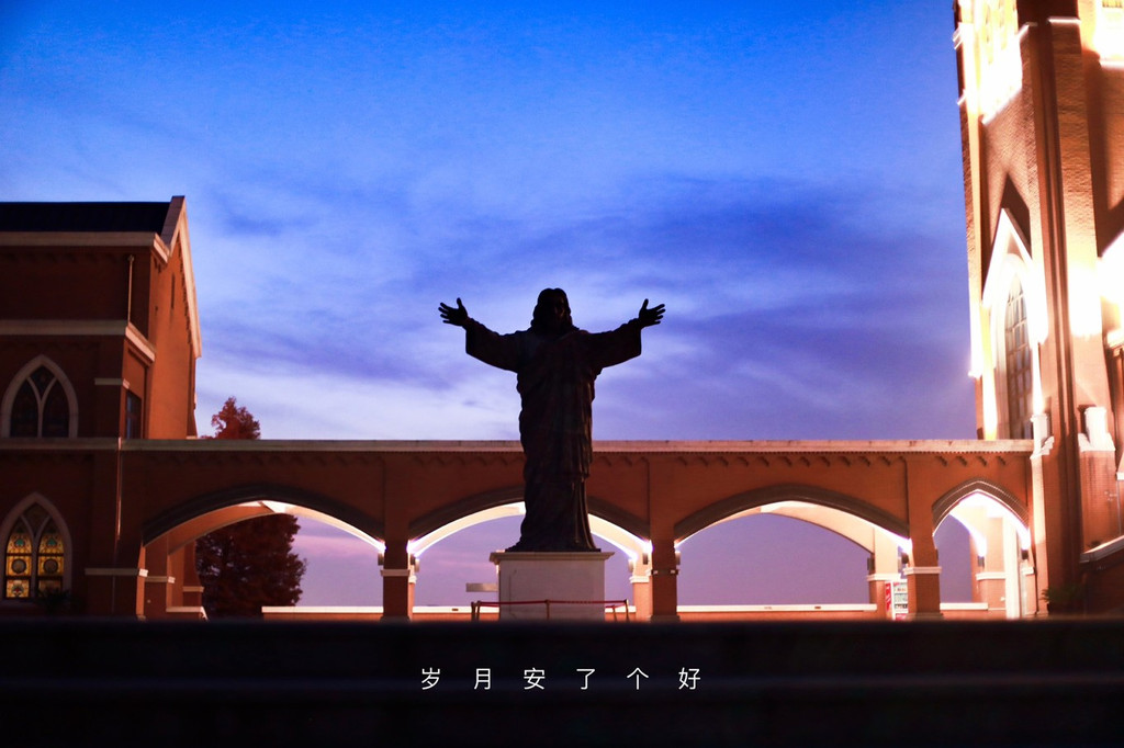 独墅湖旁有个教堂,在教堂前面的湖里矗立着一个很大的十字架,在夜幕的灯光下显得格外的圣神,庆幸自己能够留下来看到这里的夜景。