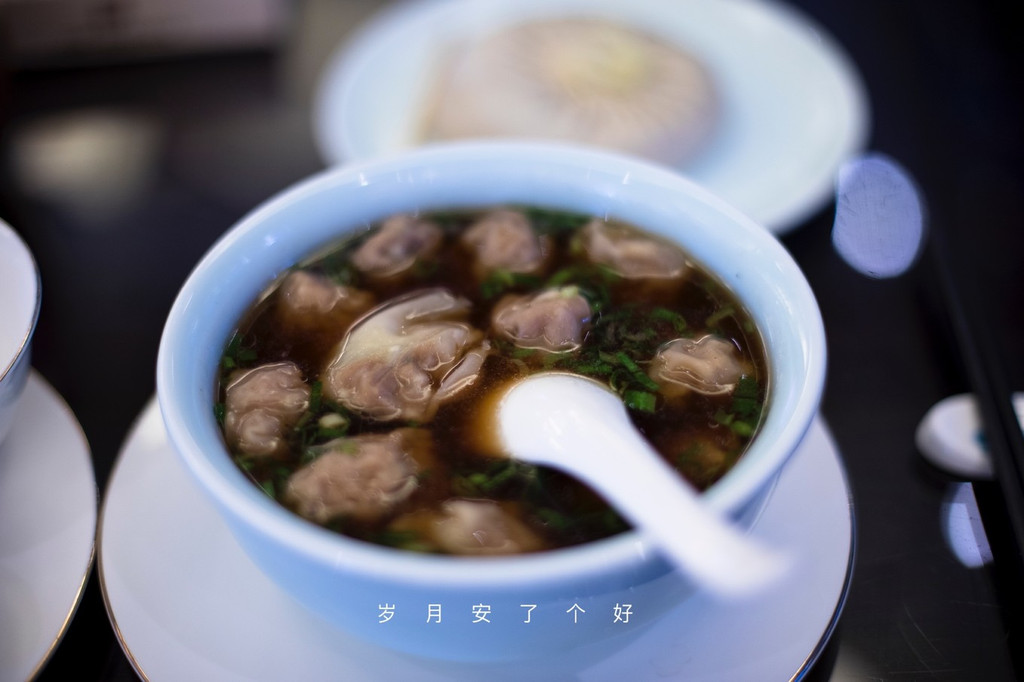 馄饨虾籽面的面比较有韧劲,浓油赤酱是一贯的风格,深得我心的是他家的锅贴,厚厚的一层菜油淋在上面,肉质是菜刀剁出来的那种颗粒感,虽说吃起来少了精致感,但是确实是物价廉美的民间好味道,