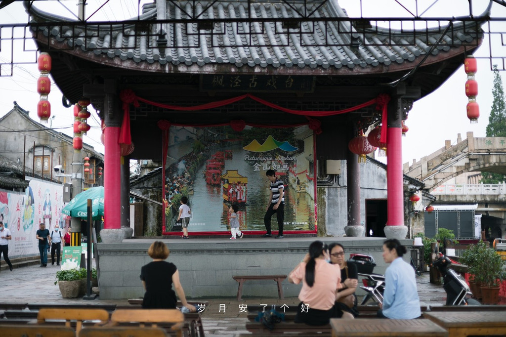 再往前走,就能看到一个飞檐翘角的古戏台,一侧临街,一面临河,这个古戏台,到了节庆或过年的时候会演唱一些传统戏曲,如: 上海 的沪剧,越剧…等,关于这些本地戏曲,从小受家人的影响,我居然还会哼唱几段。