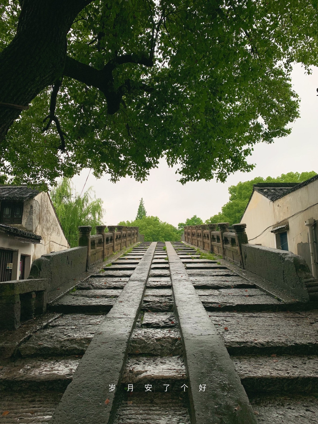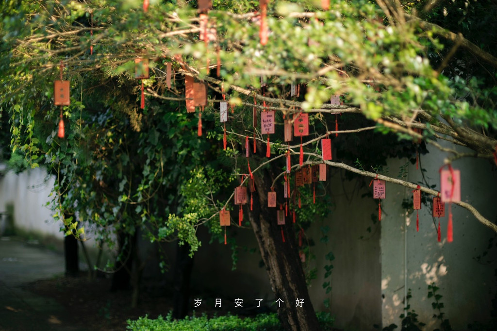 桥一旁的一颗树上挂满了祈福了的愿望。在这里位置的周围,有纯净的 江南 美景,是个不错的拍照好地方。