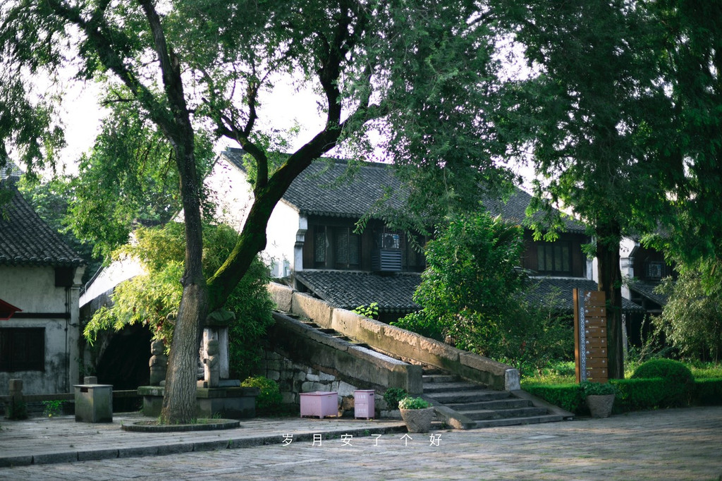 顺着小径向里走,不需几步路,就能遇见在藏在两颗 大树 底下的致和桥。这是一座枫泾现存最古老的桥梁,本地人叫它“夫妻桥”。