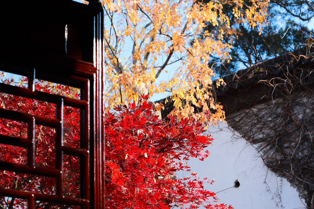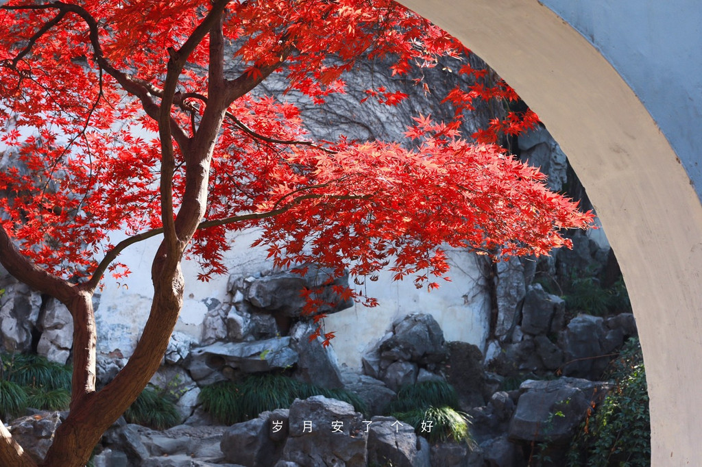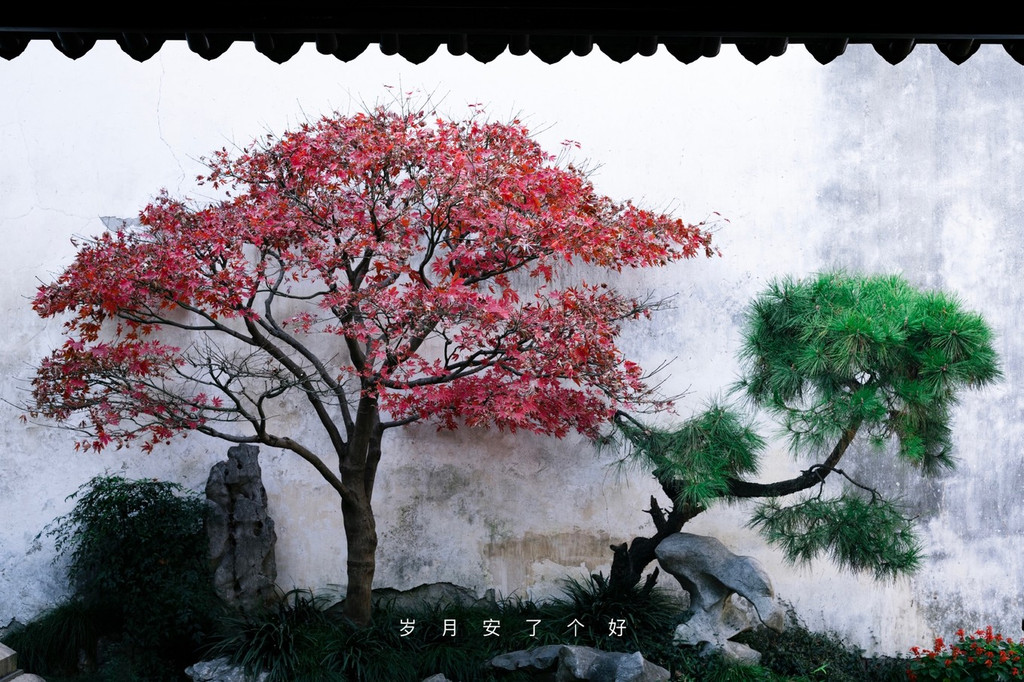 门口一棵如同嵌在画中的枫树是我对艺圃最深的印象,贴着白墙,像不像一幅立体的水墨画?