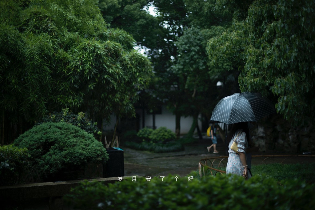 雨天整个院子里湿答答,黑瓦屋檐上滴落下来的雨,滴在天井的石桌上,盆栽里,略带一点伤感。