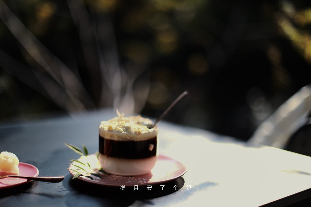 点了一杯澳白和一个叫“咖啡奶冻”的甜品,这真的是我吃到咖啡店里比较特别的一款甜品了,它不是蛋糕,类似布丁的口感,一共有三层,底层是椰子冻,中间是咖啡冻,最上面层是淡奶油和椰子片,口感非常清爽,不甜腻,吃后瞬间心情好到爆炸,吃甜食分泌多巴胺是的确靠谱的说法!