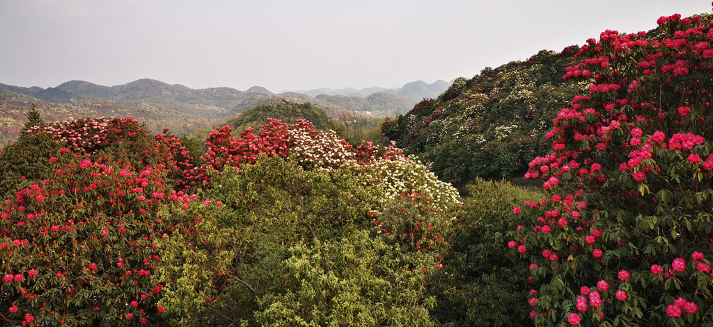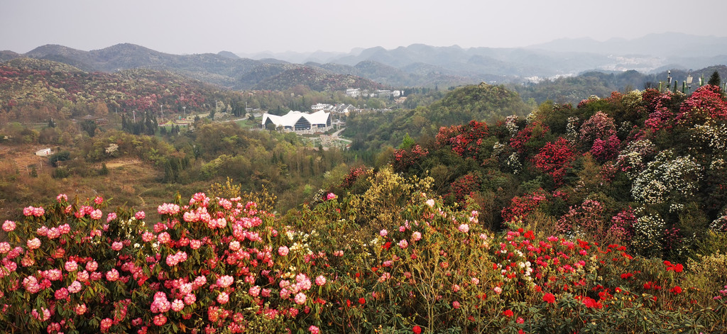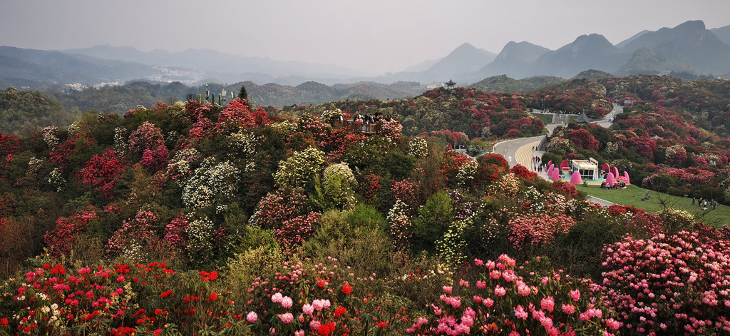 3月24日一早,乘飞机10:20到贵阳,然后乘动车至大方,4点到达百里杜鹃景区。买票后直奔普底景区,延五彩路一直向前,但见云淡天高,花开似锦,游人如织。