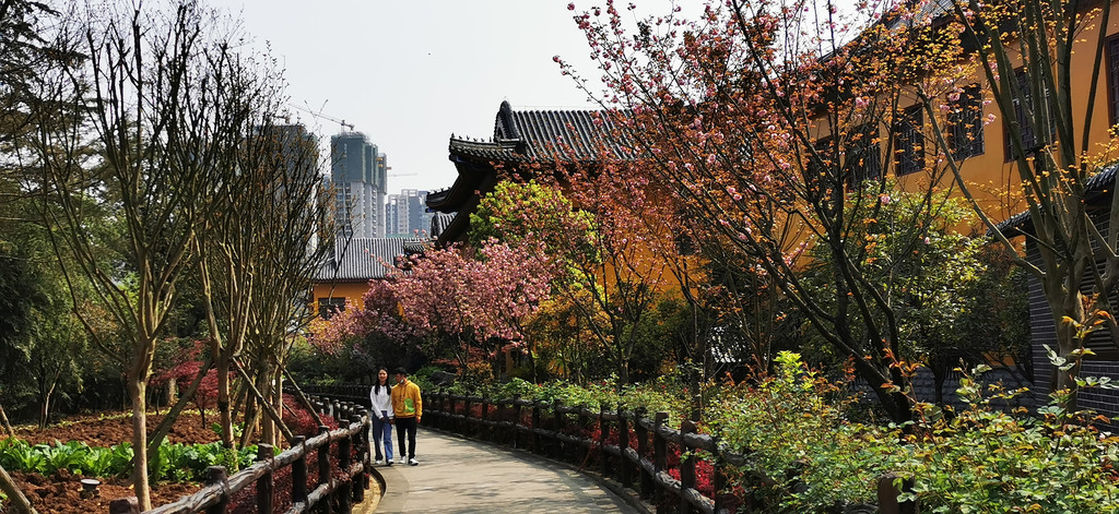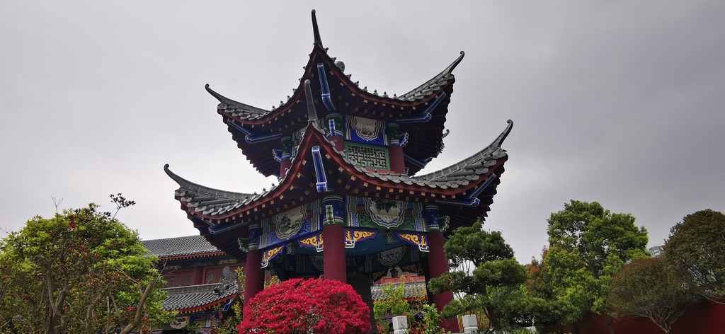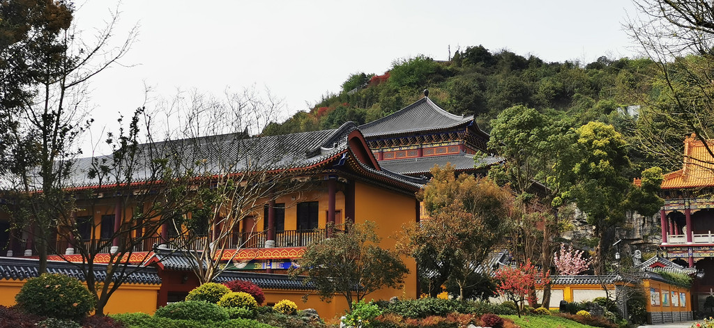 西普陀寺在景区内,旁边的夜郎古城纯属陕西袁家村那类的餐饮聚集点。寺里游人不多,几个小和尚的雕塑感觉极好,庙宇建筑确实气派,红花绿树映衬之下,颇有意境。