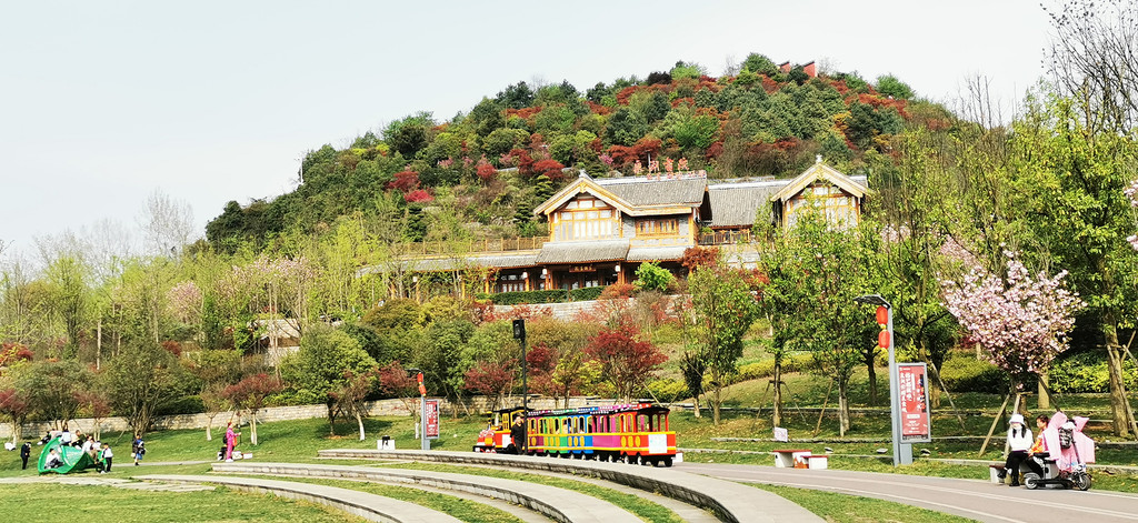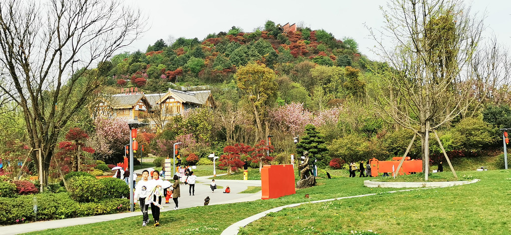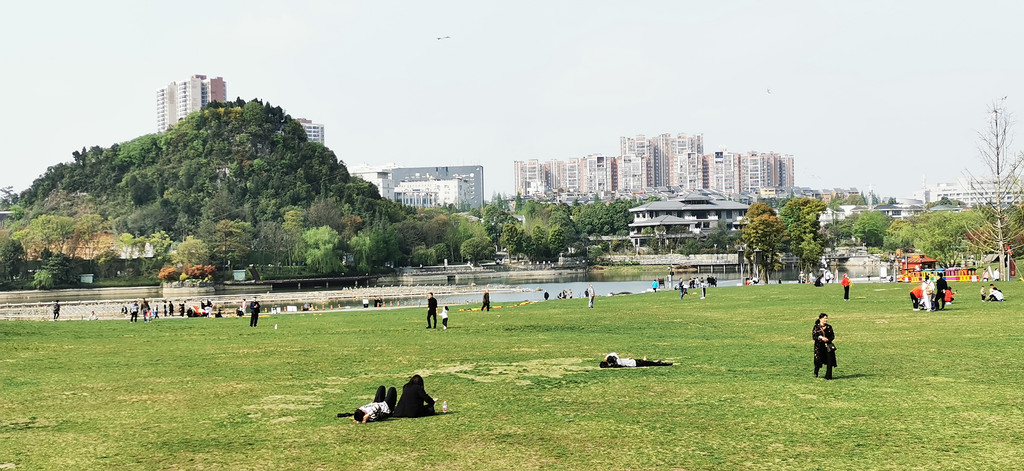 出得寺来,觉得泉湖公园还是挺大的,绿树葱茏,春花娇美。草坪很大,有天高地阔之感,是放风筝绝佳的所在,湖水清澈,绿柳依依,是不错的歇息的地方。一座小山,栈道曲折,红枫惹眼,登高处,清风习习,贵阳市景尽收眼底。游玩至天色将晚,回去休息。