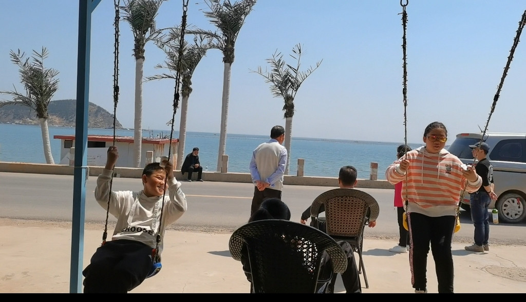 我们住的民宿前面就是月亮湾,院子里还有秋千,我们几个小伙伴玩的不亦乐乎。只要不去赶海,一有空闲时间都会看到我们几个小伙伴在这里边荡秋千边聊天。民宿里的房间也十分的漂亮,我的房间是其中最大的 ,一到晚上,小伙伴们就到我的房间里来玩。但是这里的水龙头没有热水,我妈妈吹鞋的时候,吹风机还呲出火花来了呢!不过不得不说,这个民宿的位置还是不错的。