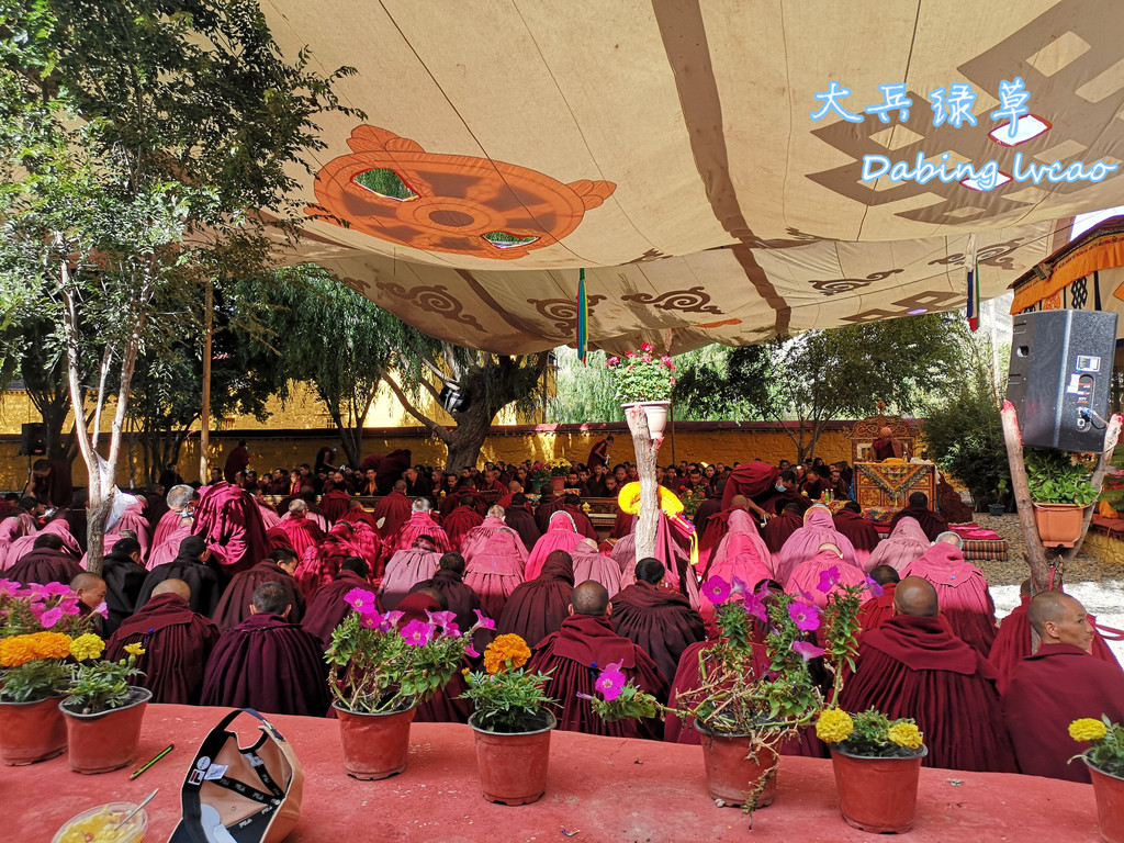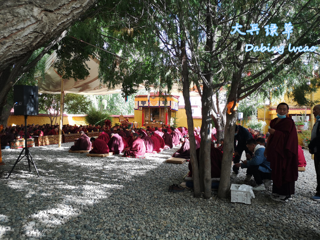 在桑耶寺,不但欣赏了建筑艺术,还可以感受它的宗教氛围,在大殿左侧的一个院子里,这里可能准备讲经,我们有幸进去看了看,众多的僧侣围坐在一起,静待着智者的到来。虽然间或有些议论或走动,但他们庄重的表情告诉我们,这里将迎来一场重要的讲经活动。