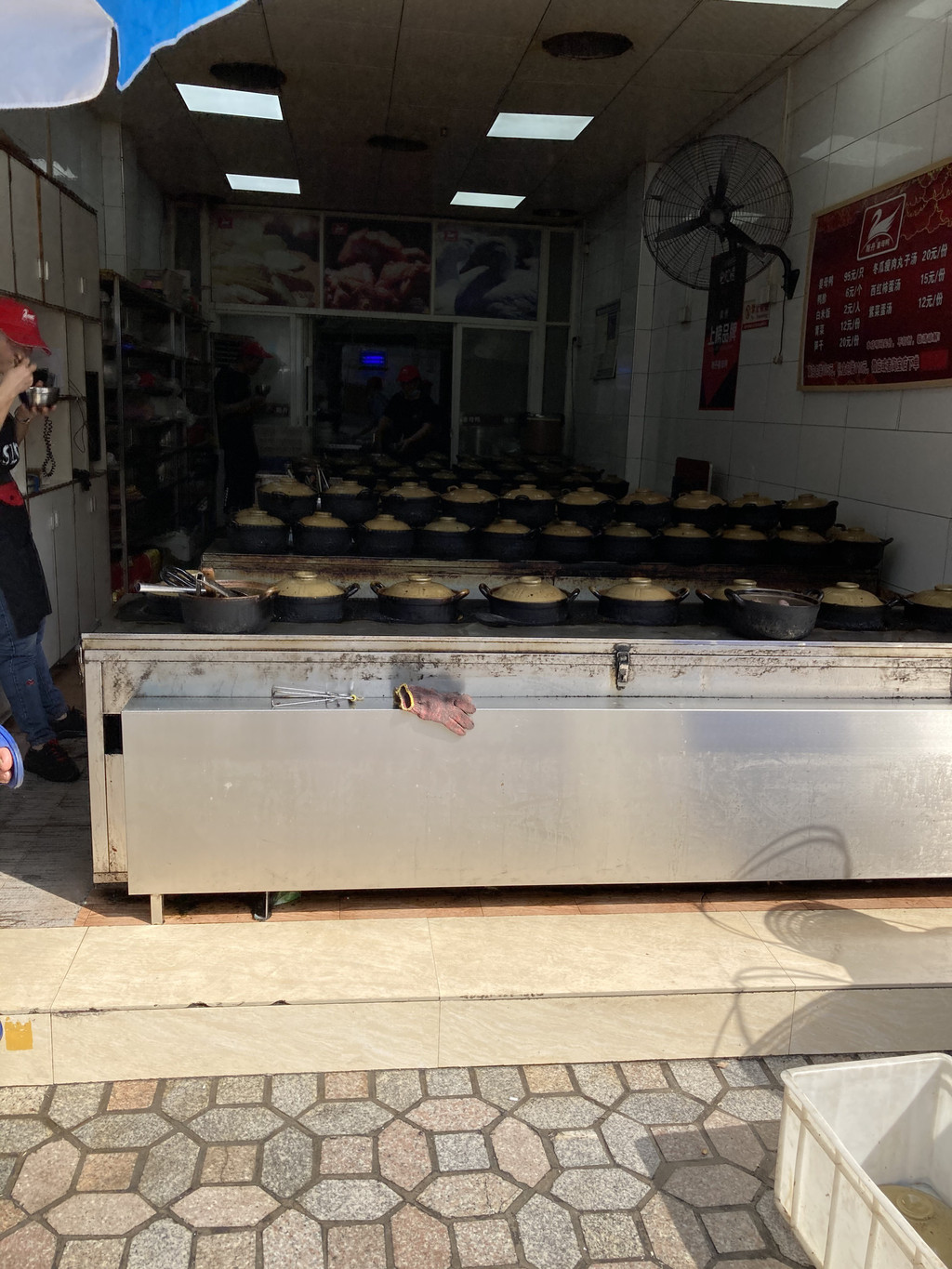 纪念馆周围就有几家评价不错的小吃店。同利肉燕老铺,很不起眼的门面,往里看也没有桌子可以堂吃,倒是窗口处不停有人来买燕皮、鱼丸啥的。观察了半响,我还是决定问一下,一问说有堂吃,就拿个塑料小凳子坐在柜台上吃,坐着看着营业员给你烧水煮起来。五分钟后便可以吃了,我要了鱼丸和肉燕,别说,还真不错,配上马路对面的葱饼,一顿早饭算是解决了。价格自然不便宜,一顿早饭吃了20元。吃完早饭隔壁超市买了一大瓶水,这就准备进三坊七巷景区了。此刻,有些旅游团已经开始在进去门口集结了,对我来说,蹭导游也是可遇不可求的一种方式。