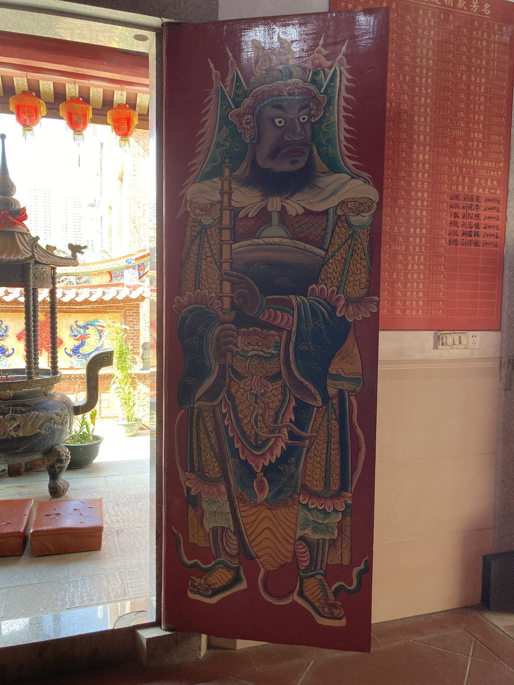我很喜欢庙前的那副对联,上联:公平正直入门不拜无妨,下联:诡诈奸刁到庙倾诚何益。第二天白天,我特地前来关岳庙再次拜访,虽然是工作日,但是庙前人头攒动,排队进庙,里面拜好再拜外面,好不热闹。