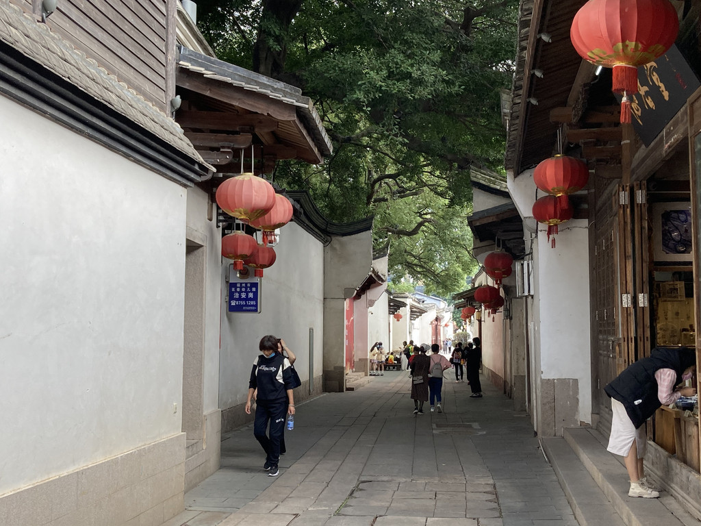 顾名思义,三坊七巷,就是可以理解为三个坊七条巷。很典型里坊制度,南北向的一条路作为中轴。西侧为三坊,东侧为七巷,喜欢古建筑和传统文化的同学一定要抽空来看看。维基百科上对里坊制的解释:里坊制,又称“坊市制度”,是一种基于《周礼》的城市布局,城市遵循中轴对称布局,以贯通全城的大街为中轴,左右完全对称,城内居住区像棋盘一样切割成一个个小方格。唐长安城、新罗王城、日本平安京、西夏兴庆府都是采用里坊制建造的都城。里坊制度于宋、元之后不复存在。我们在很多武侠游戏里可以看到游戏内城镇的布局很多都是里坊制,三坊七巷就是保存良好的里坊街区。三坊七巷内,大部分古建筑内是需要购买门票才能进入参观的,有少数是免费进入的,可以通过公众号现场预约进入。除了这些之外,还有大量的商业店铺,杂货铺(纪念品),古玩店(茶壶茶叶),饭馆、客栈(民宿)、药铺(奶茶咖啡)。我花了1个多小时算是把每条小巷走了个遍,也算是走马观花吧。
