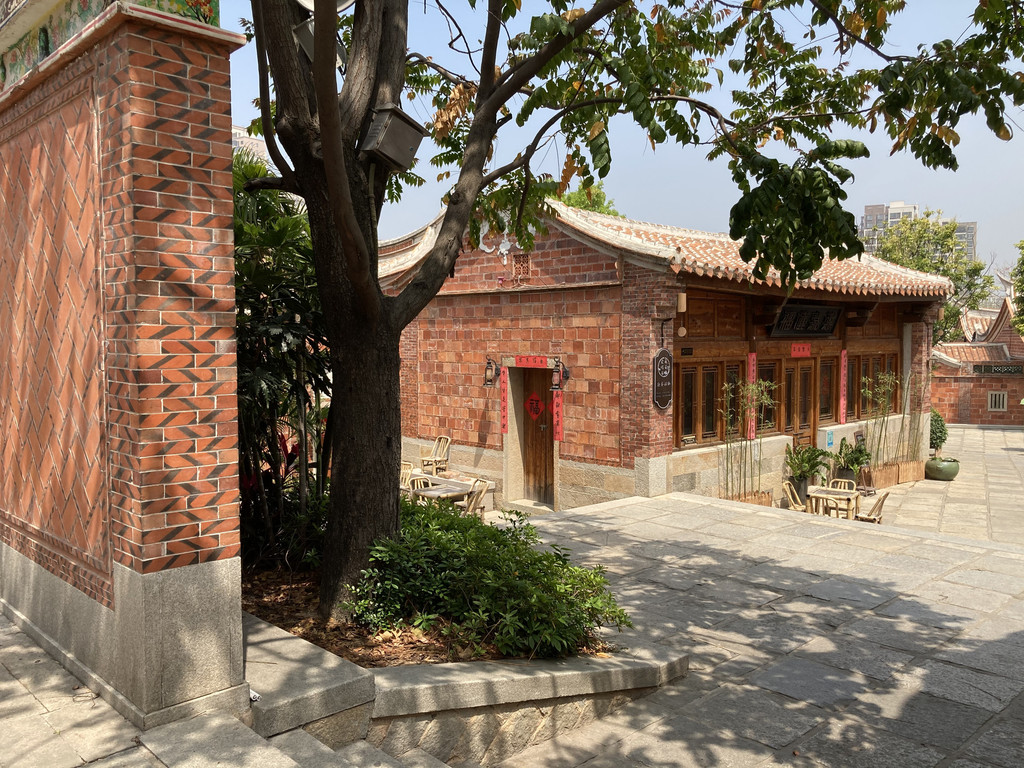 下了车之后步行没多久就可以看到一片红砖的围墙,从中间的小道步入,便进入了五店市街区。工作日没有什么人,找了个奶茶店要了杯饮料解渴,与店员询问,告知这里平时并无多少游客,但是周末和节假日这里是游人如织,周边的人都会来这里。整个街区主要是以传统建筑的参观、特色高档餐饮、文创这三类组成。先闲逛的话一个多小时可以逛完,然后在吃上一顿美食或者找个饮茶咖啡的店小歇一下,可以度过半天光景。