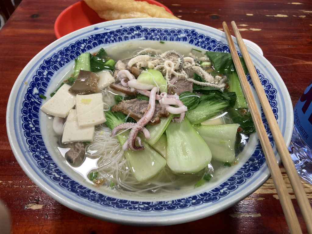 出了三坊七巷景区,就是福州的市区,与其他大城市并无太多不同。我找了一家评价还可以的饭馆解决午饭-后街捞化,进门发现吃的人还蛮多的。进门后是有点手足无措,菜单上的菜名很难和实际的食物联系起来,看其顾客都是一进门便是熟练的来份xx,加xx加xx。对着菜单我还是来份套餐,加了根油条,因为听到别人都加油条了。然后这碗捞化就是这个样子,感觉就是我们这里的海鲜细米线之类的,可能我是吃不惯或者缺少了某种辅料,味道并不是太浓郁。