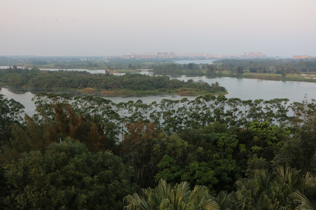 其次是远眺。在国宾馆,可以远眺万泉河、龙滚河、九曲江三江入海口,一种大江大海收入眼底,豪迈之情,油然而生。