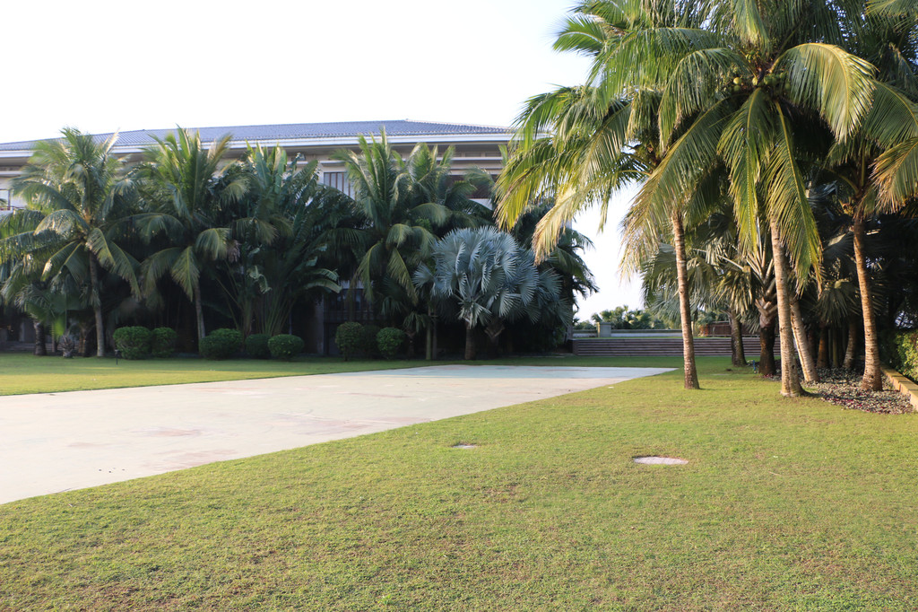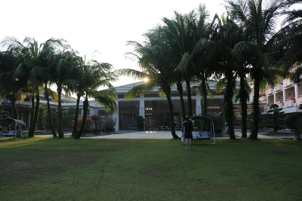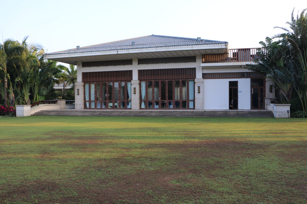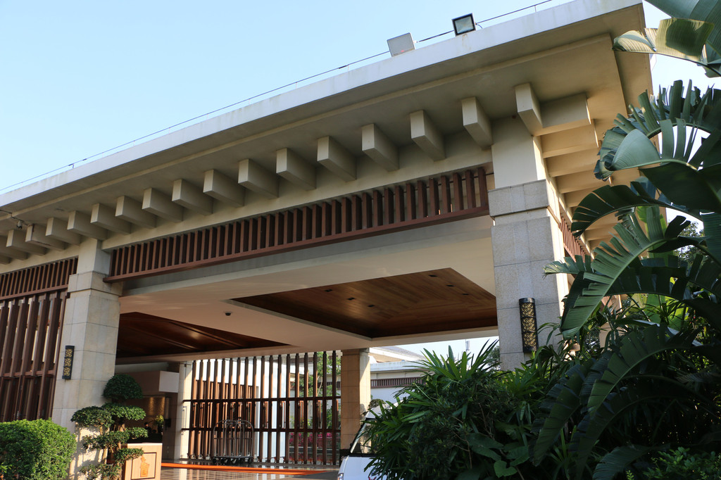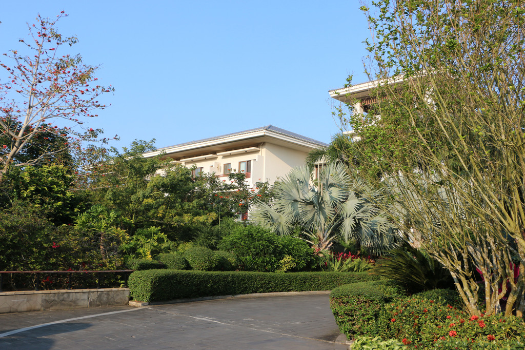 首先是高大。一是位置高,博鳌国宾馆,座落在博鳌龙潭岭主峰山麓,此处为博鳌地区最高点。二是大气,博鳌国宾馆建筑风格,很容易让人想起上个世纪五十年代北京的“十大建筑”,想起故宫,想起唐王朝的大明宫。