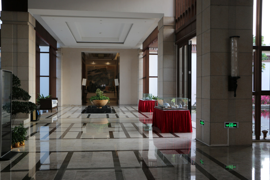 最后一个词讲艺术。对游客开放的楼,醒目地陈列着历次博鳌亚洲论坛国宴用的瓷器,壁画,廊迴,均为精心挑选和摆放。