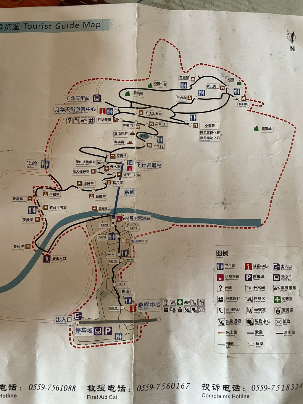 进入售票处,也就是望仙楼,一路走走逛逛,也没得先前的陡峭,人也稍微多了点,看了地图才知道原来索道山顶的位置也就离望仙楼的售票不远,得瑟了一下!接下来就是按照景区的路线一路大饱眼福的参观齐云山沿途的各个景点。
