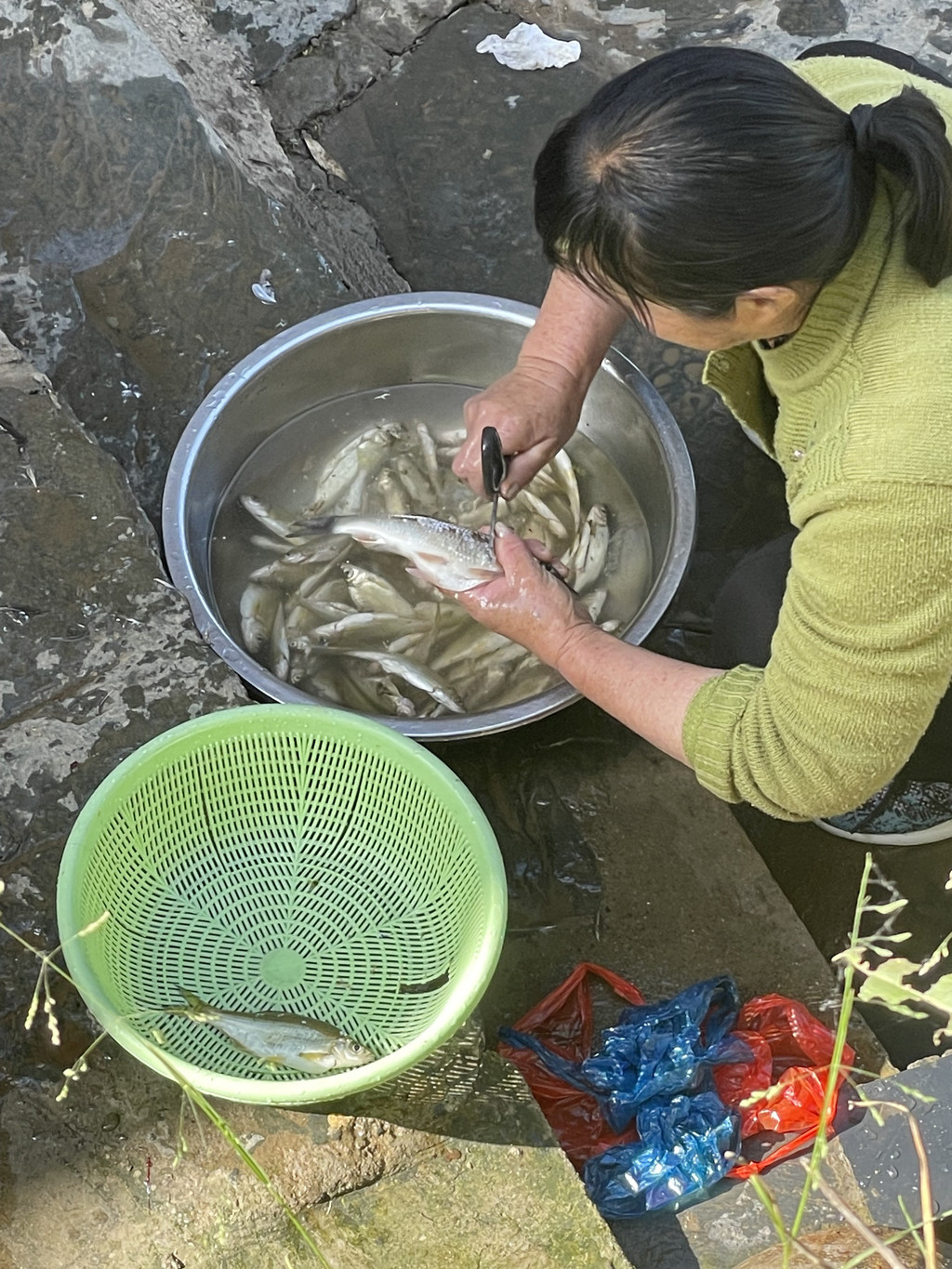 酒店离村里的神树挺近,走几百米就可以瞻仰神树,刚好该地势也可以俯瞰整个村庄,看黑瓦白墙,看袅袅炊烟,看远处的重山峻岭,郁郁葱葱。乘着空闲的时间,我们也逛了逛村子,一个小时差不多,看看当地人生活,看看他们的房子,连小鸡都悠哉的,每家每户的门前都会有一条小溪流过,水里清澈见底,时常还有小鱼游来游去。