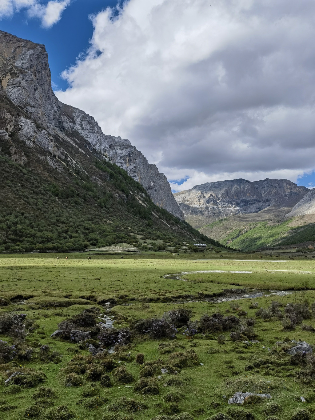 然后就开始了往返10km的徒步之旅。当然,体力不好的也可以选择骑马,不过出去玩的乐趣就会失去了很多。在洛绒牛场有小卖部,可以买到奶茶,酥油茶还有食物。可以在这里补充一些能量。