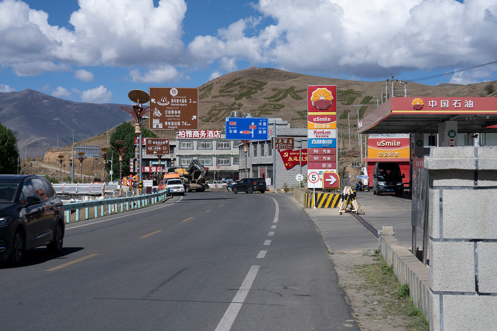过了海子山就是稻城县了,距离我们今晚的目的地香格里拉镇还有74公里,约1小时16分钟的路程。现在是夏天,下午5点,天还是大亮。