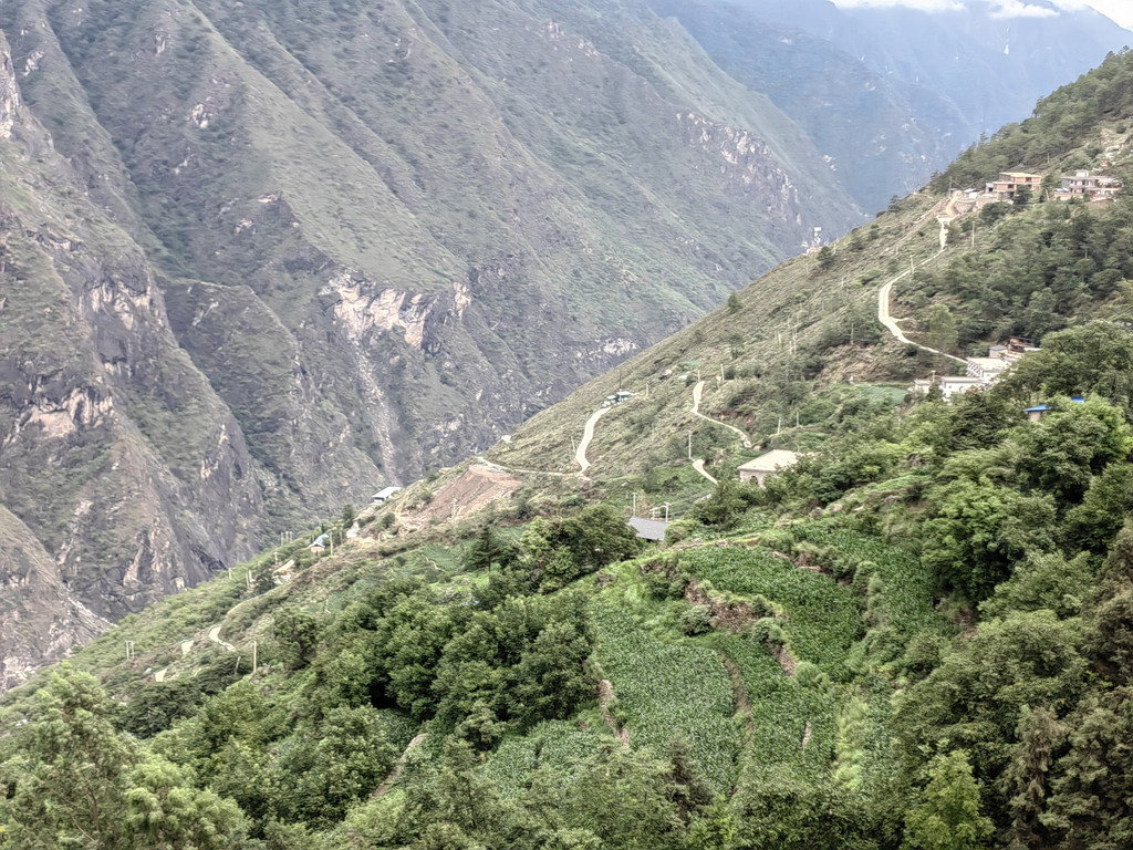 从虎跳峡镇上高路徒步的几个点,包括纳西雅阁、茶马、中途、张老师家几个著名客栈都是反向单车道的山路,只有拐弯处可以会车,且坡度都比较大,应该超过三十度。开始时我也没有底,怕自己的1.2T小雷凌上不去,但是后来也是有惊无险,建议车技比较好的可以自驾上去,但是SUV会相对没有那么大压力,如果车技一般且排量低于1.0以下的最好包车前往。