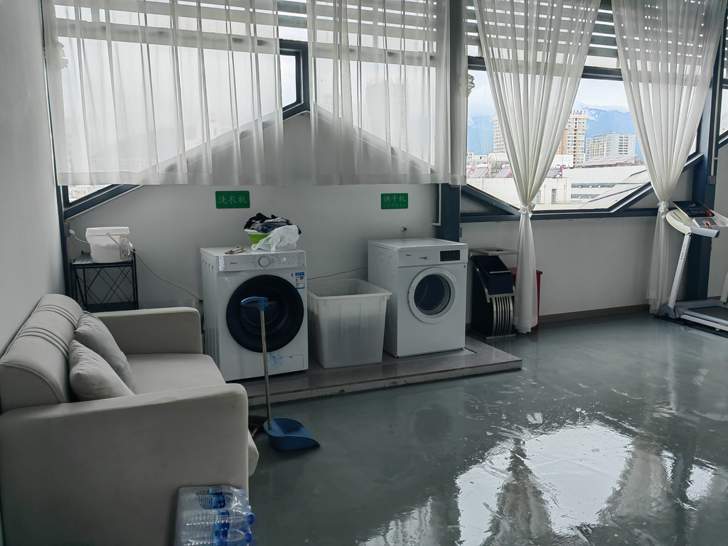 吃完早饭到洗衣房逛一下,吃饭前洗了衣服,刚好上去收一下。