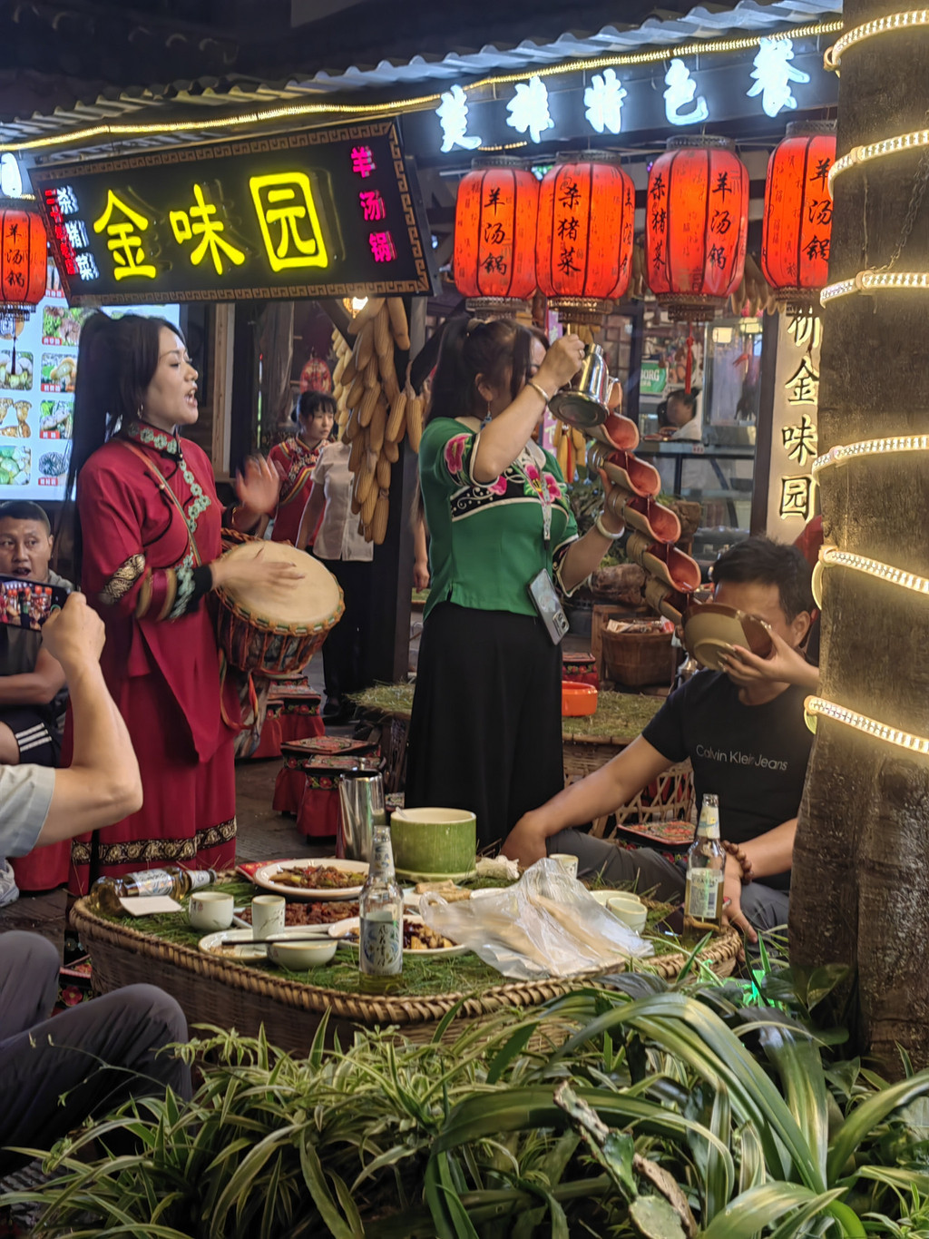 按原计划,虎跳峡后将去香格里拉,但是因为中途小孩生病耽搁了,所以此次滇西北环线自驾基本泡汤了,只能往回走,上网搜了一下,楚雄比较顺路,于是出发前往楚雄,经过四五个小时车程终于到达楚雄的彝人古镇。这个景点虽然全部都是人造的,但交通方便,一下高速就到了,晚上里面还非常热闹。