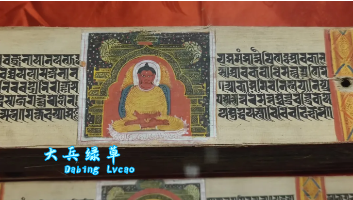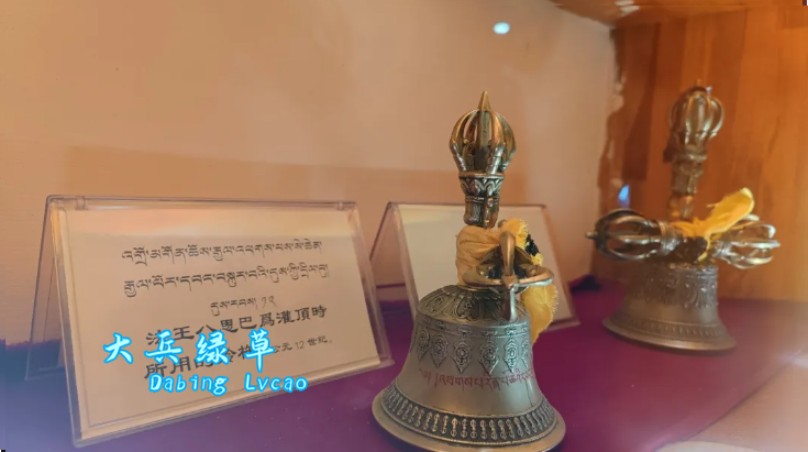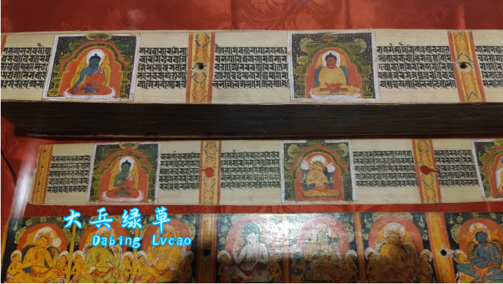 从房顶上下来,我们参观了萨迦寺的珍宝馆,珍宝馆展出了珍贵的经书、唐卡、瓷器、法器等文物,其中有一部极为珍贵的贝叶经和八思巴法王使用过的法器。