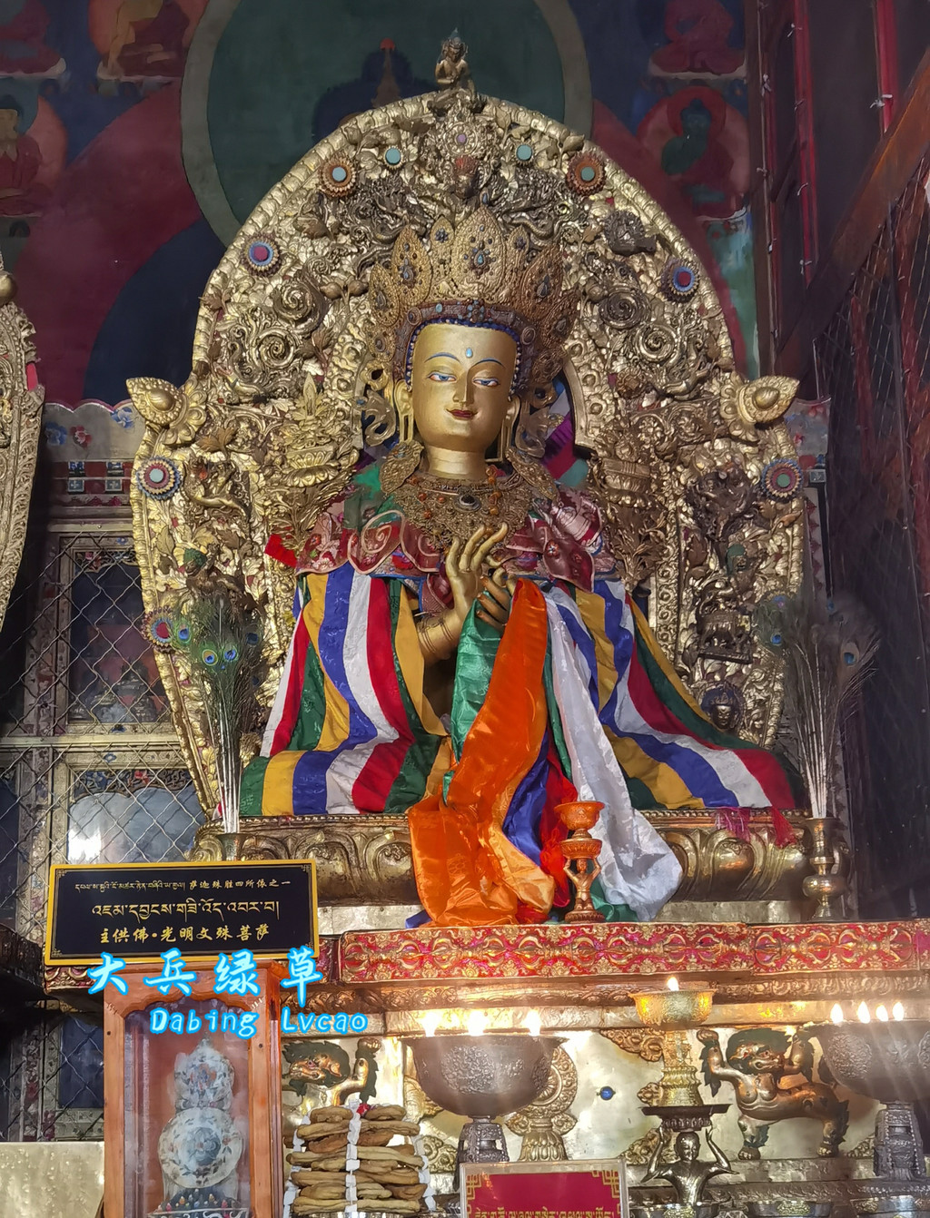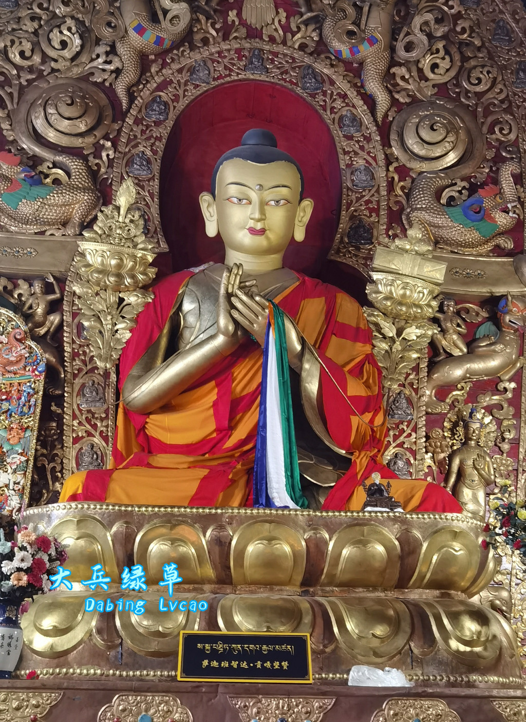 大殿内供奉着释迦牟尼佛像和光明文殊菩萨佛像,还供奉着萨迦派的杰出领袖萨迦班智达、八思巴等的塑像。