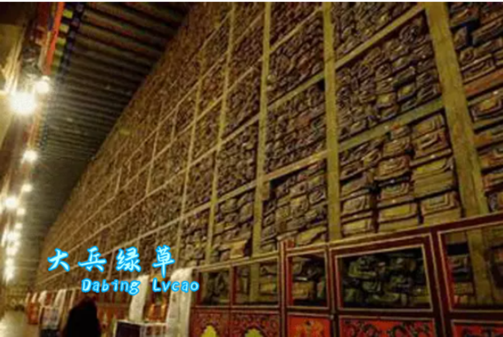 大殿后面是为高10米、长60米,藏有8.4万卷经书的经书墙,由于现场禁止拍照,只能在网上找了一张照片展示它的规模。